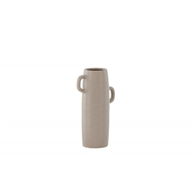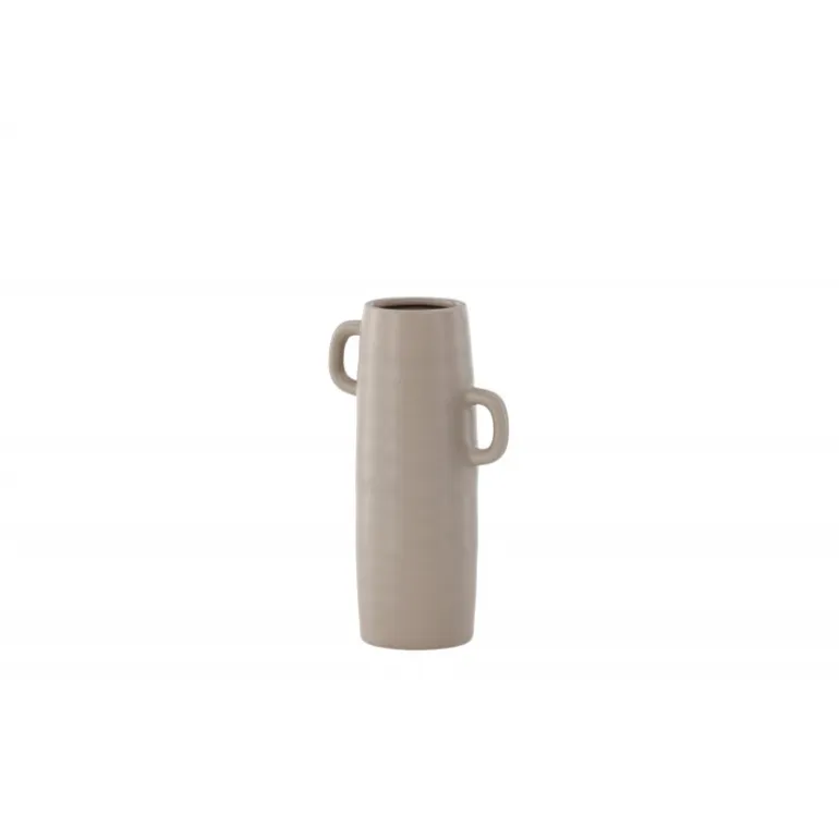 Stolt præsenterer vi – Cent. En sofistikeret og moderne vase, der vil forbedre dit interiør på en unik måde. Med en højde på 22 centimeter er Cent fremstillet af stentøj, hvilket giver den en solid og elegant følelse. Den varme lysebrune farve gør vasen til et alsidigt stykke, der passer perfekt ind i ethvert hjem og stil. Dens unikke design inkluderer to håndtag på siderne, placeret i forskellige højder for at skabe kunstnerisk asymmetri. Disse håndtag gør det nemt at flytte vasen, samtidig med at de tilføjer en interessant visuel dimension. Vasen har en let bølget struktur, som giver den et distinkt og moderne udtryk. Denne detalje skaber et visuelt fokuspunkt og giver vasen en unik karakter, der vil tiltrække opmærksomhed. Uanset om du vælger at placere friske blomster, tørrede arrangementer eller blot lade Cent stå alene, vil denne vase være en imponerende tilføjelse til dit hjem. Giv dit rum et strejf af elegance og modernitet med Cent – den perfekte måde at vise din personlige stil på.