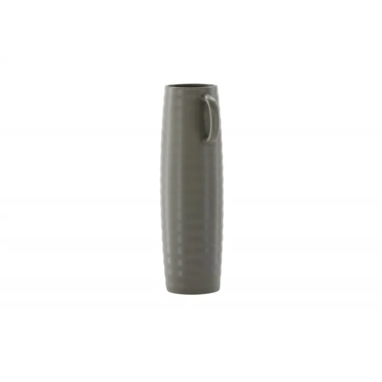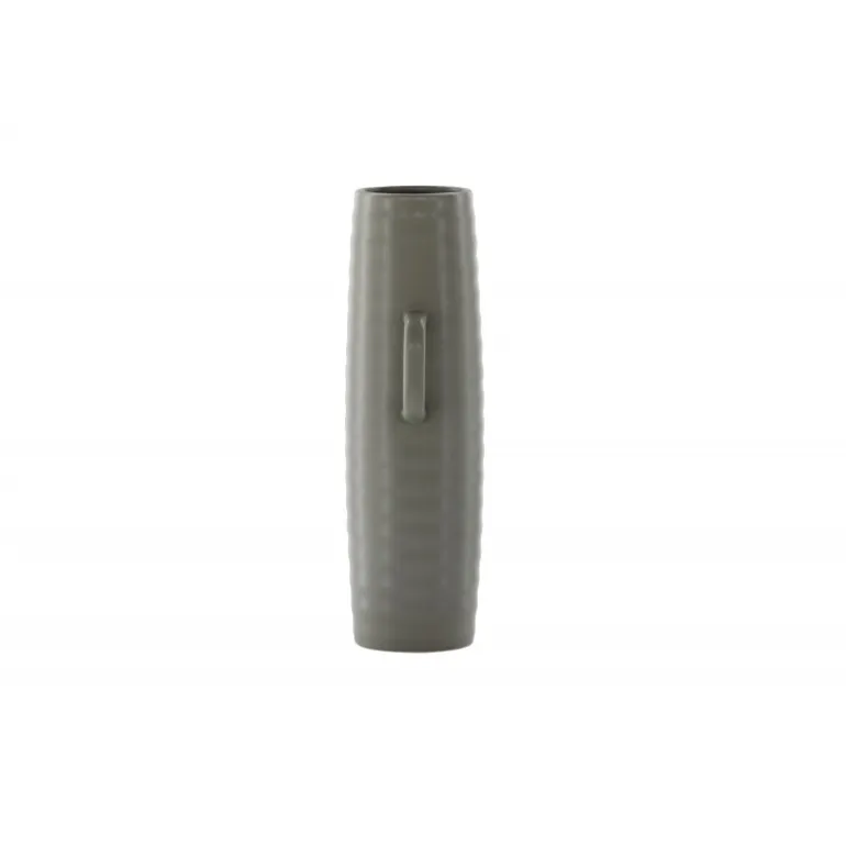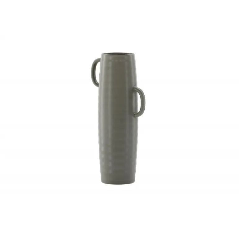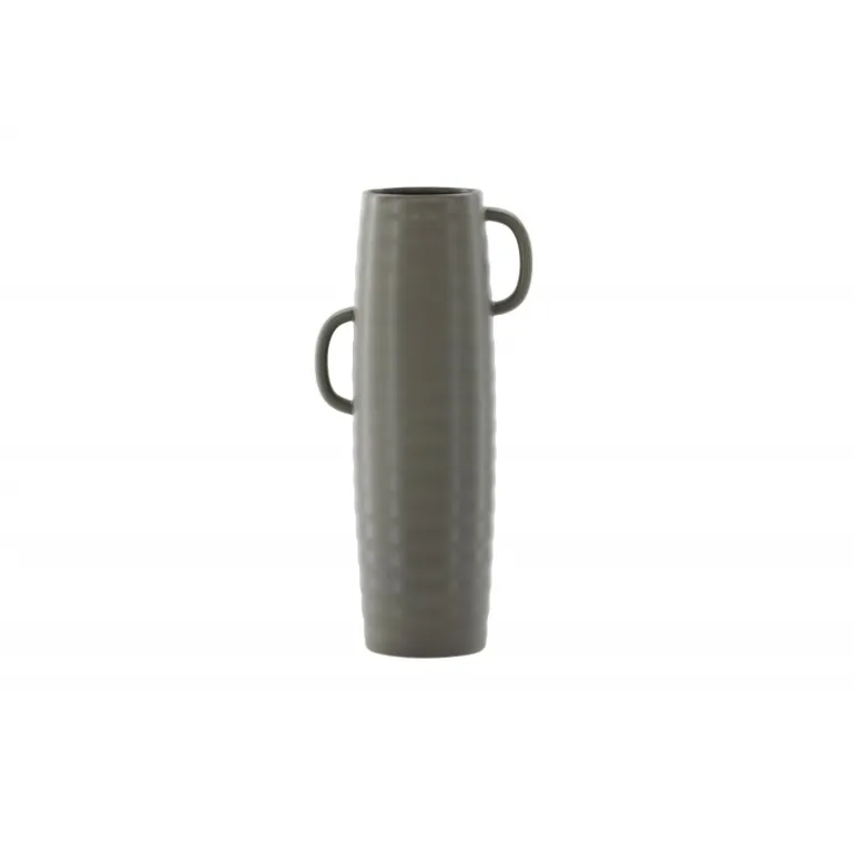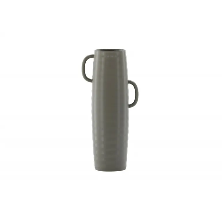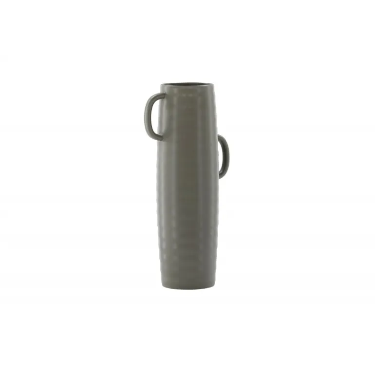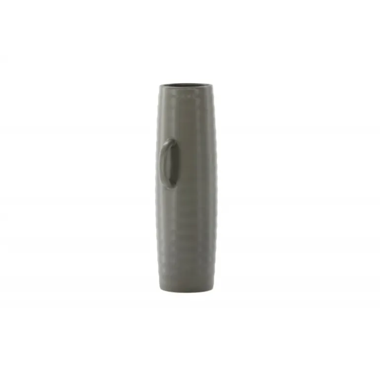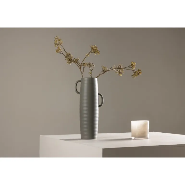Introducer en elegant touch til dit hjem med din nye favorit, Cent. Den står imponerende 41 centimeter høj og er en mørkegrå skønhed fremstillet af holdbart stentøj. Vasens struktur har subtile bølger, der tilføjer en organisk følelse til dens moderne design. Cent er mere end bare en vase; det er en kunstnerisk oplevelse. Dens unikke håndtag, placeret på hver side, introducerer et ekstra lag af detaljer. Disse håndtag er placeret i forskellige højder og giver vasen en dynamisk og harmonisk balance. Denne asymmetriske touch forvandler Cent til et kunstværk i sig selv. Med Cent kan du tilføre dit hjem en sofistikeret og moderne atmosfære. Uanset om den vises som en selvstændig ornament eller fyldt med smukke blomster, vil Cent helt sikkert blive et samtalestykke og en elegant tilføjelse til din indretning.