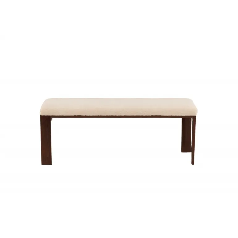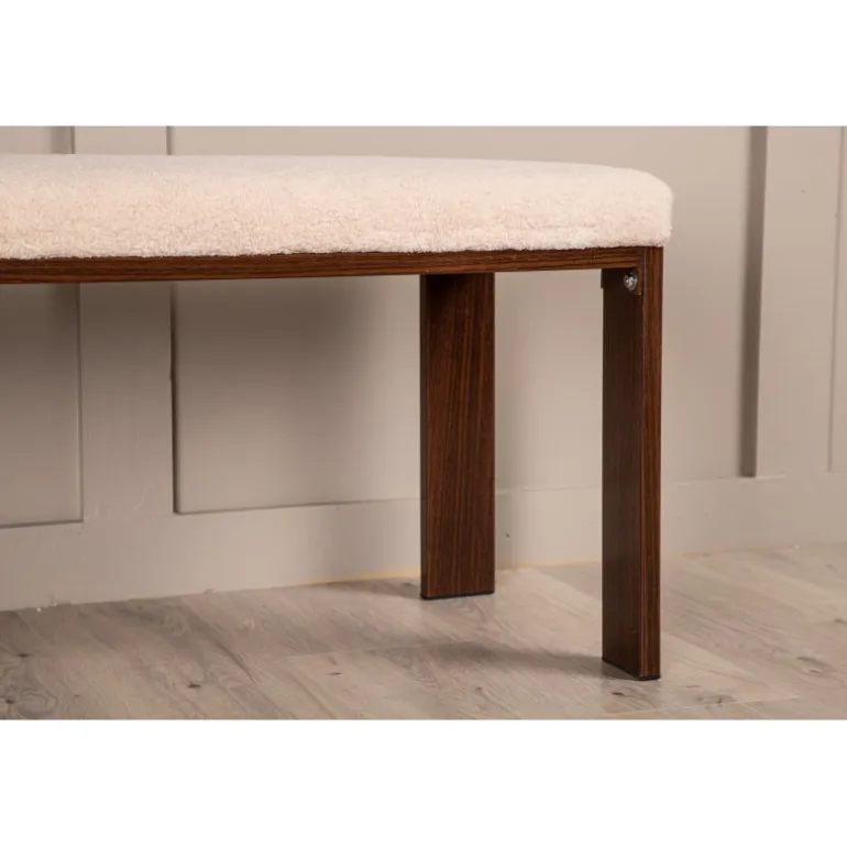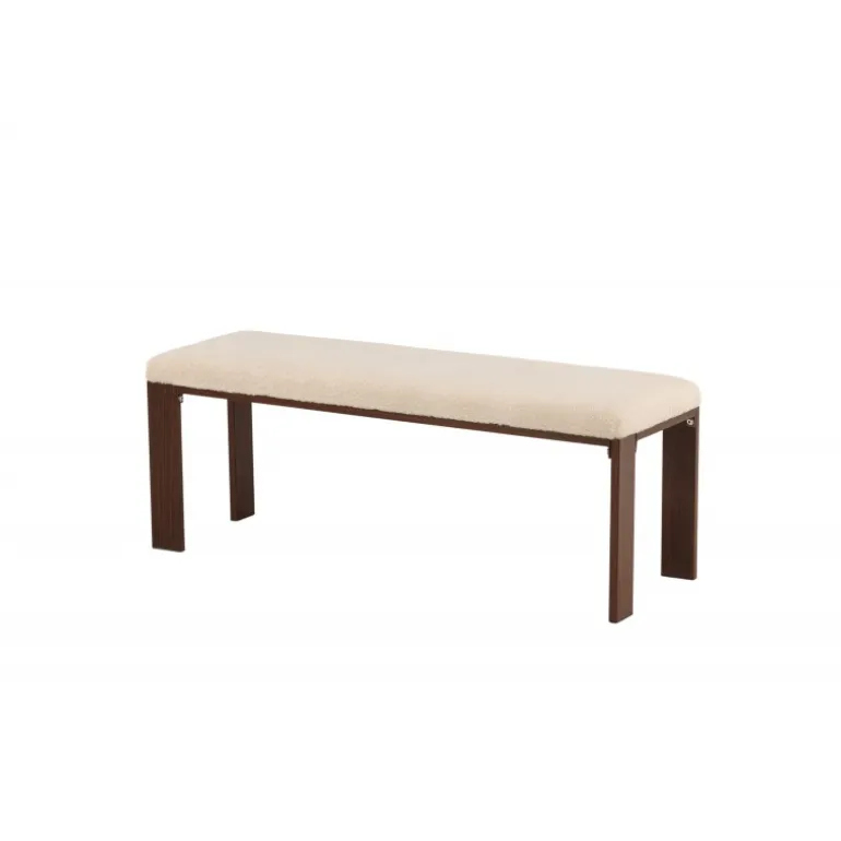 En bænk designet helt i tråd med de nyeste trends! Denne bænk fra Chester-serien har et rektangulært sæde i blødt fleece-stof i hvid farve og fire ben i brun valnødfarvet træ. Det perfekte interiørdetalje til entréen eller stuen, enten som et ensomt stilikon eller for at skabe mere siddeplads i hjemmet. Kun fantasien sætter grænser, men én ting er sikker; denne bænk skaber hurtigt en modebevidst blikfang!