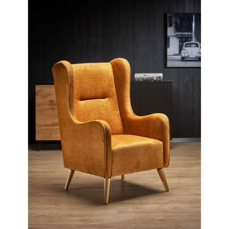Oplev den ultimative komfort med CHESTER lænestol i en smuk honningfarve. Denne stol kombinerer stof af høj kvalitet med massivt træ, hvilket giver både stil og holdbarhed. Perfekt til afslapning i stuen eller læsehjørnet. De naturlige træben og det varme honningfarvede stof skaber et indbydende miljø. Tilpas stolen yderligere med valgmulighederne N1, N3 og N4 for at matche din indretning.
