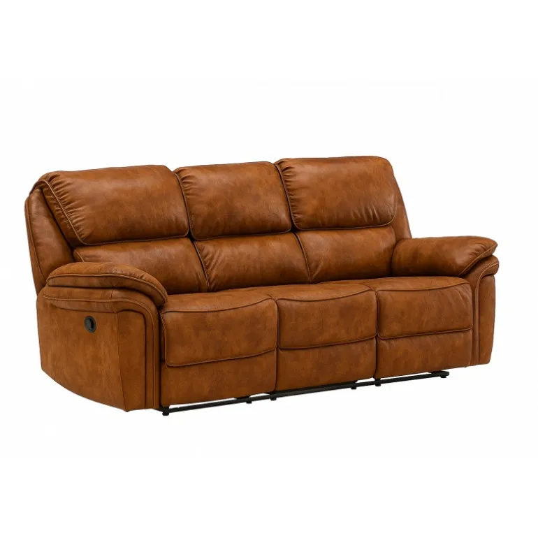 Christopher er en kraftfuld og luksuriøs sofaserie i praktisk mikrofiber. Denne traditionelle Cognac 3 personers sofa med lige design tilbyder maksimal komfort og luksus på alle pladser, med justerbare funktioner på de to yderste pladser. Fold ryglænet ned og fold fodstøtten ud – i en recliner sofa er du garanteret komfort i flere timer, så frem med popcornene og nyd komforten. Mikrofiber vedligeholdelsesråd: Til daglig pleje anbefaler vi støvsugning. Hvis du ønsker at tørre møblerne af, skal du bruge en mikrofiberklud i varmt vand. Tilføj gerne et par pump med et middel beregnet til materialet og vrid kluden ordentligt. Rul den foldede klud omkring en svamp, så den bliver til en hård rulle, og tør overfladen af.