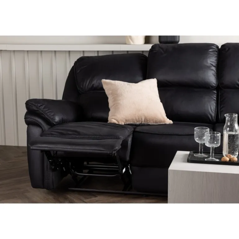 En pompøs, sort recliner sofa i et praktisk design, der hurtigt skaber en indbydende atmosfære i dit hjem! Denne trepersoners sofa fra Christopher -serien har et robust og praktisk betræk af mikrofiber i traditionel sort farve med dekorative syninger, der bidrager til det lækre udseende. Sofaen har et lige design med fokus på høj komfort. Alle pladser føles lige behagelige og luksuriøse, og de to yderste pladser er justerbare for optimal afslapning, når du kommer hjem. Fold ryglænet tilbage og fold fodstøtten ud – her kan du synke ned i timevis. Indret stuen med matchende recliner lænestole og synk ned foran en god film med popcornskålen klar. Det bliver ikke bedre end dette!