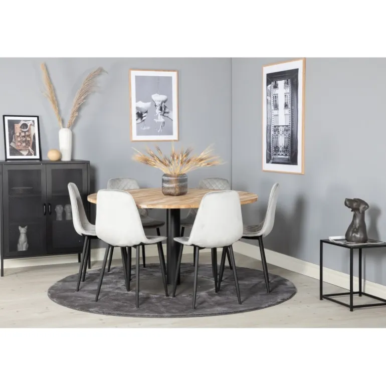 At købe en forudkomponeret Spisebordssæt er både trendsikkert og praktisk! Her kombinerer vi vores runde spisebord Cirebon med vores siddevenlige spisebordsstole Polar. Lad hjemmets hjerte blive præget af din nye iøjnefaldende Spisebordssæt.