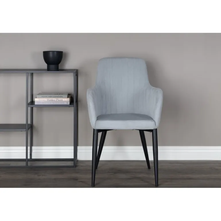 Lad moderne design møde 50’ernes nostalgi med denne trendy fløjlstol fra Comfort-serien! Betrukket med blødt gråt fløjlsstof, der skaber et moderne look i hjemmets hjerte. Benene er lavet af sort pulverlakeret metal, og sædet med integrerede armlæn i gråt fløjlsstof tilbyder komfortabel siddekomfort. Dekorative sømme på indersiden af ryglænet og armlænene tilføjer en stilfuld detalje. Nogle samlinger kræves. Plejeinstruktioner: Fløjl har en tendens til at udvikle aftryk, når luvet lægger sig ned. Disse aftryk kan få stoffet til at se slidt ud, hvilket er helt normalt for denne type materiale. Afhængig af hvordan lyset falder, kan stoffet fremstå i flere forskellige nuancer.