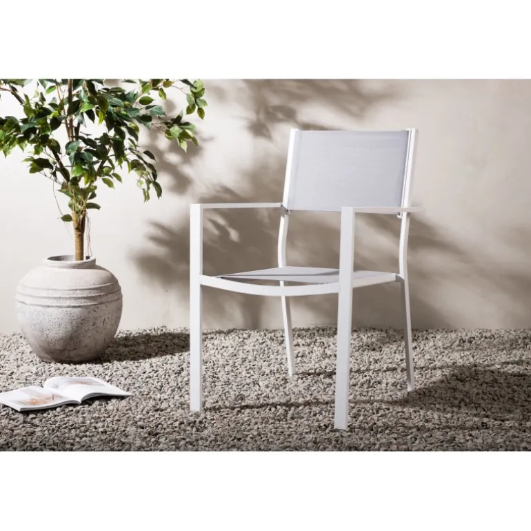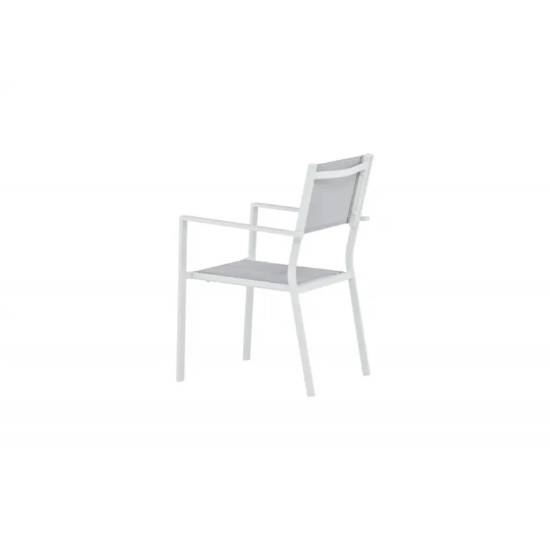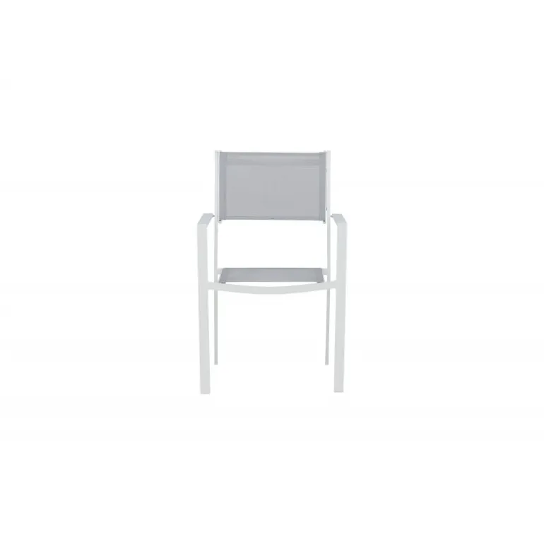 Copacabana i sit industrielle og stilfulde design gør sig fremragende sammen med andre udendørsmøbler. Dens hvide konstruktion i aluminium og grå sæde i Textilene skaber en dejlig blikfang og giver dig en praktisk spisestol, der holder over tid. Inviter til mange sociale øjeblikke denne sommer! Stolen er stabelbar.