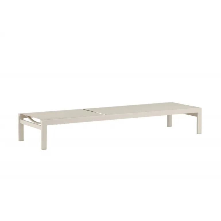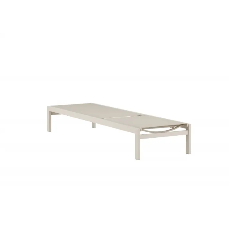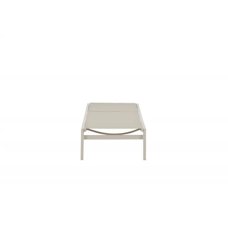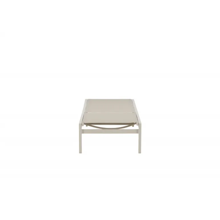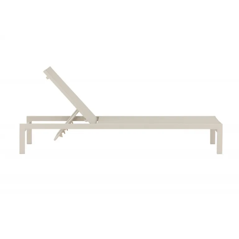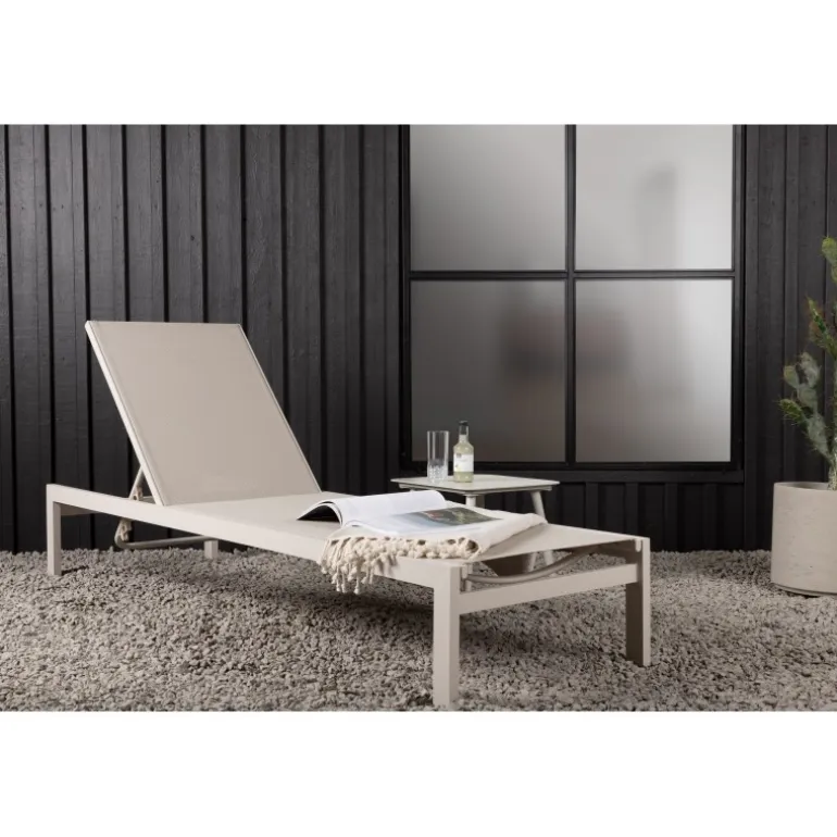 Klassisk solseng i beige aluminium og textilene. Solsengens ryglæn kan justeres – nyd en dejlig lur eller læs en god bog bekvemt! Aluminium gør solsengen let og modstandsdygtig over for rust, mens textilene sikrer komfort. Perfekt til en afslappende dag i solen.