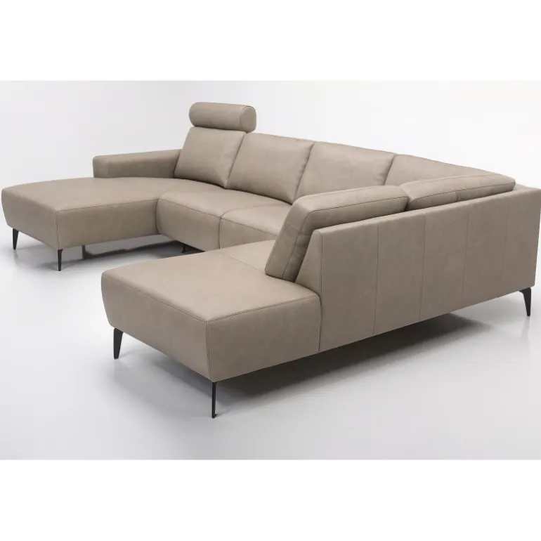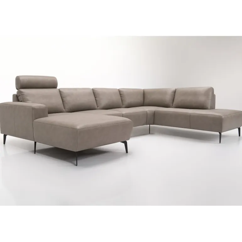 Denne hjørnesofa med chaiselong er en skønhed med sin bløde og afrundede form og de flotte benmuligheder, der giver en luksuriøs stil til enhver stue. Sofaen er tilgængelig i flere farver, der passer til enhver smag og indretning.