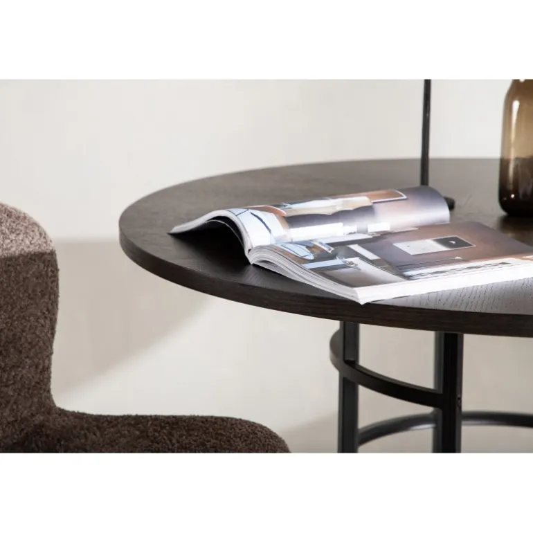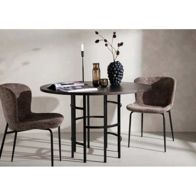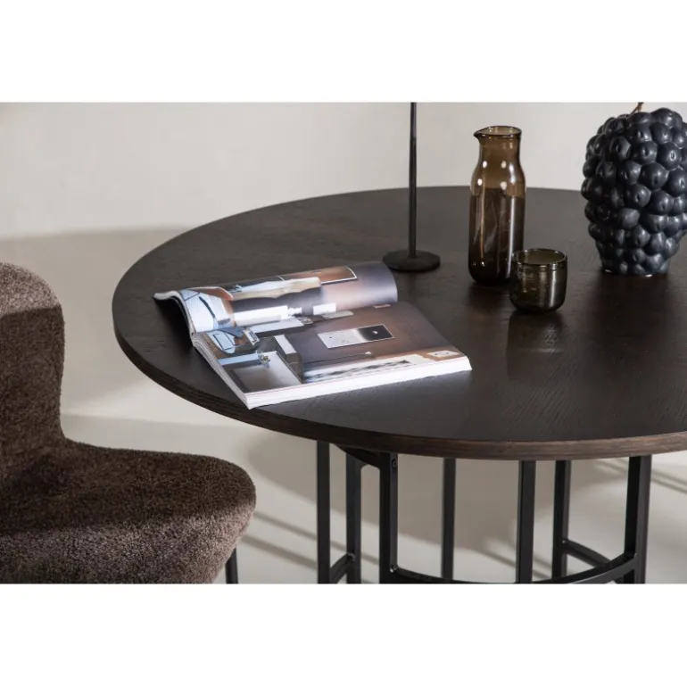 Skab et moderne blikfang i dit hjem med et rundt spisebord fra Copenhagen serien! Dette trendsikre spisebord tilhører Furniture Fashion kollektionen og har en smuk, brun bordplade i MDF med finer og en dekorativ, cylindrisk underdel i sort metal. Et rundt spisebord er perfekt, hvis du ønsker at skabe en social og indbydende atmosfære i dit hjem. Indret køkkenet eller stuen med et iøjnefaldende bord, hvor ingen ender på kanten! Følg vores bedste vedligeholdelsestips, og du får et møbel, der holder længe.