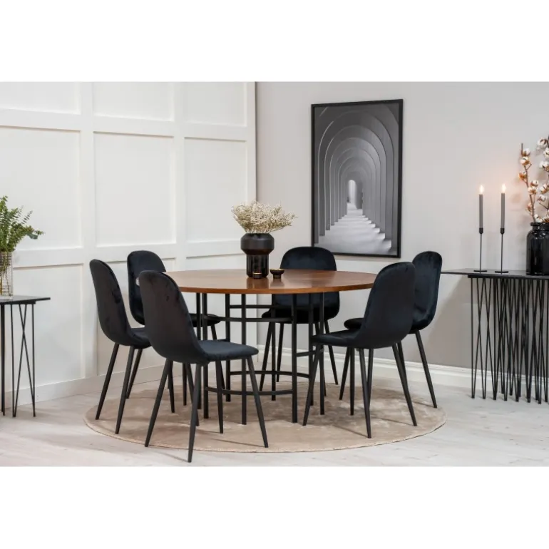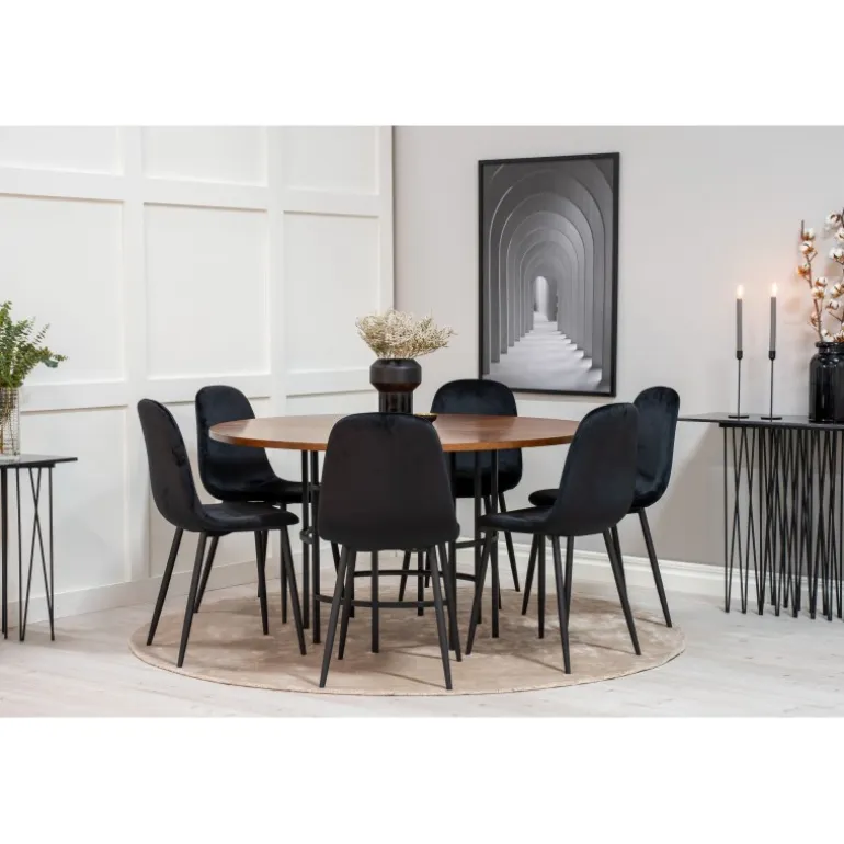 - Komplet Sæt: Inkluderer rundt spisebord og Polar spisebordsstole.