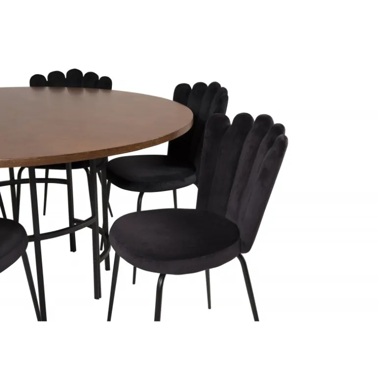 - Elegant design: Kombinerer sorte velourstole med en mørkebrun bordplade.