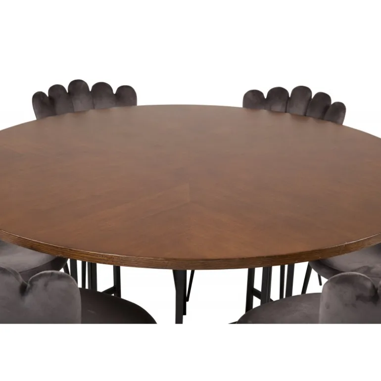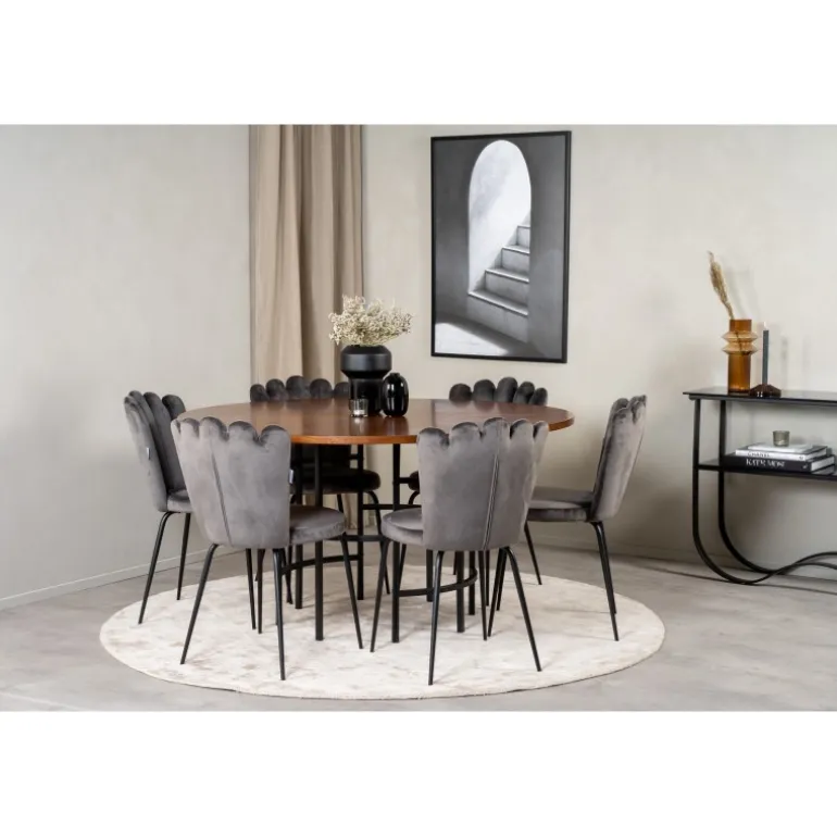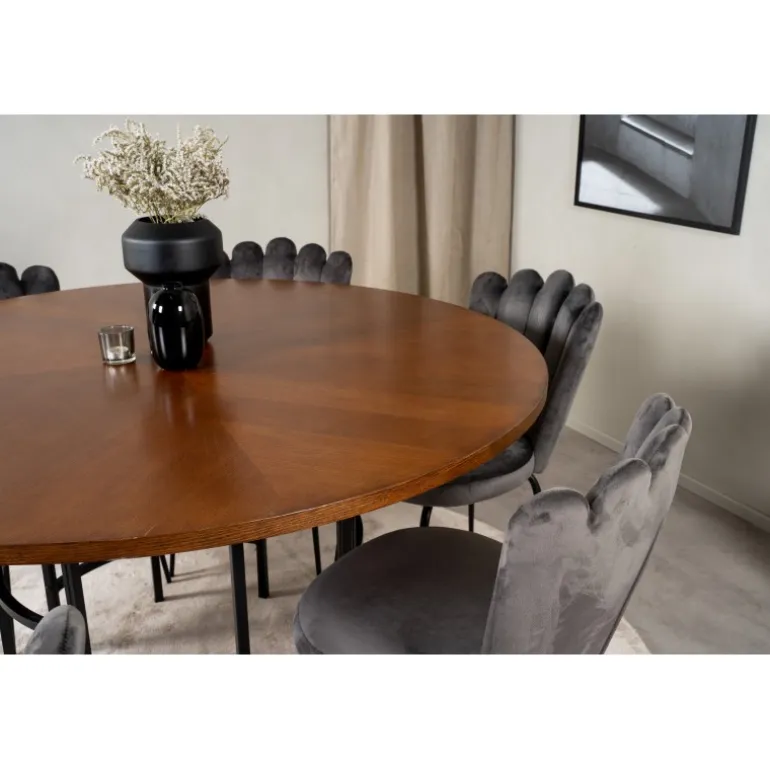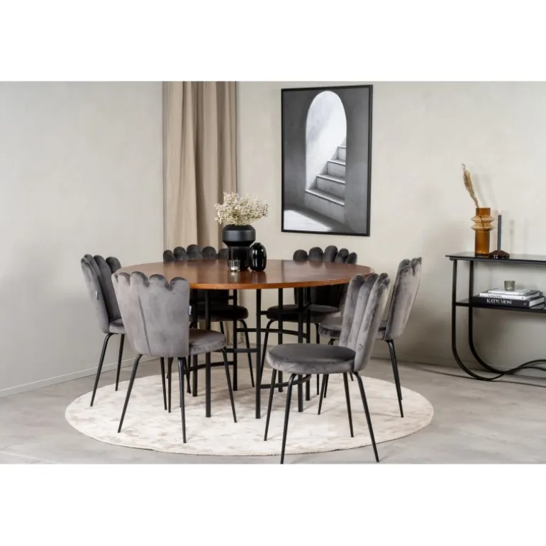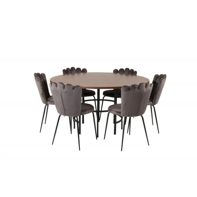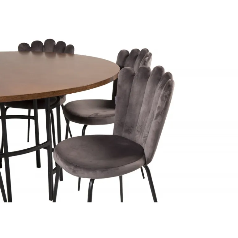 Rundt Spisebordssæt med en dejlig aura fra Furniture Fashion kollektionen. Her er materialer og farver blandet i en fantastisk kombination. Bordet Copenhagen sammen med grå spisestole i Limhamn serien. De unikke ryglæn på stolene giver Spisebordssættet et vidunderligt unikt udtryk. Perfekt til enhver moderne spisestue, dette sæt vil tilføre elegance og stil til dit hjem.