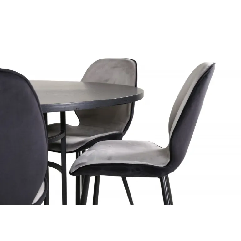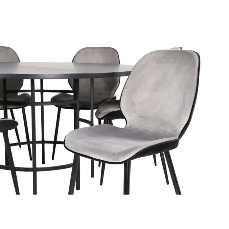 - Komplet Sæt: Inkluderer 6 Emma spisestole i lysegrå og sort fløjl.