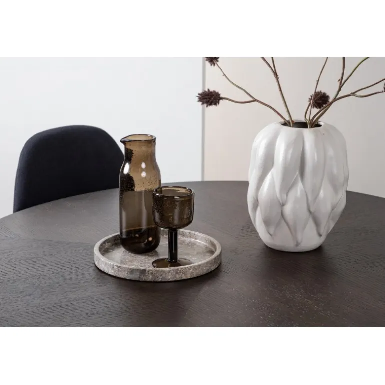 - Holdbart materiale: Bordplade i MDF med finer og base i sort metal.