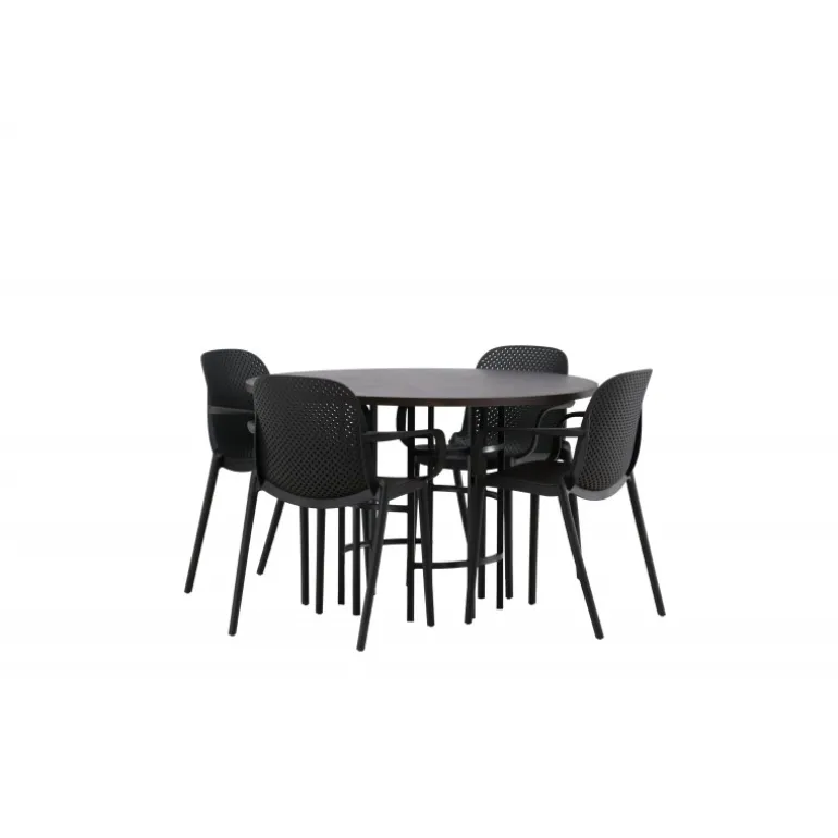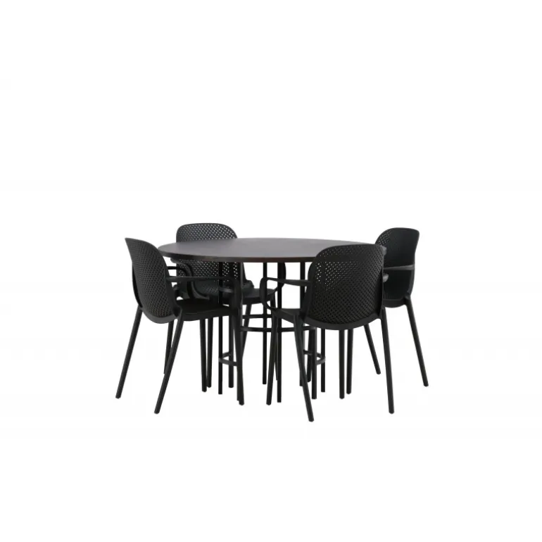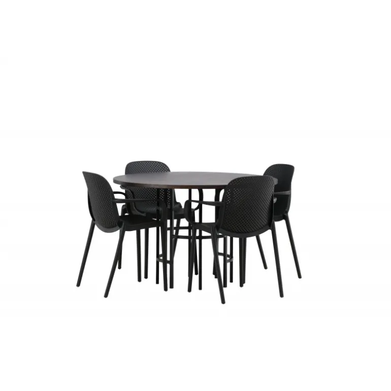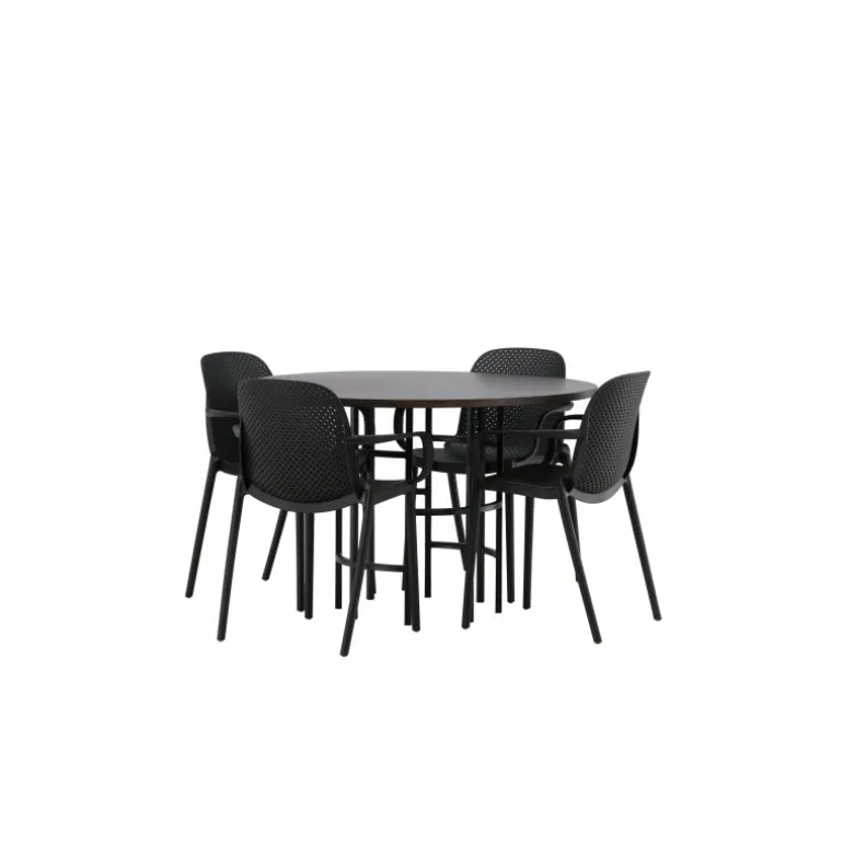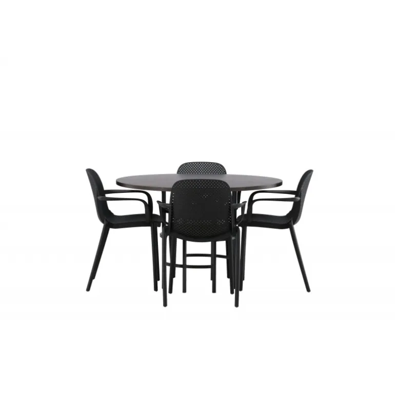 Møbler hjertet af dit hjem – dette Spisebordssæt vil imponere dine gæster med sit smukke, skandinaviske design! Dette tidløse spisebord fra Copenhagen-serien tilhører Furniture Fashion-kollektionen og har en flot brun bordplade i MDF med finer og en dekorativ cylinderformet base i sort metal. Her sammen med spisestole fra Baltimore-serien. Stolene har et industrielt design i sort plast, hvilket gør dem både stilfulde og holdbare. Skab et charmerende midtpunkt i dit hjem!