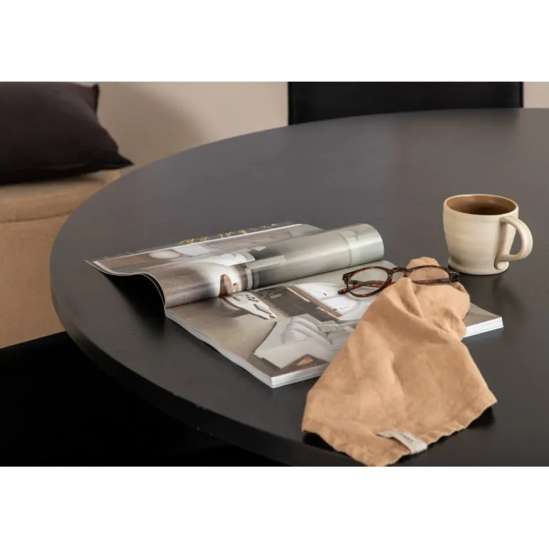 - Elegant design: Sort MDF bordplade med finér og sort metal understel.