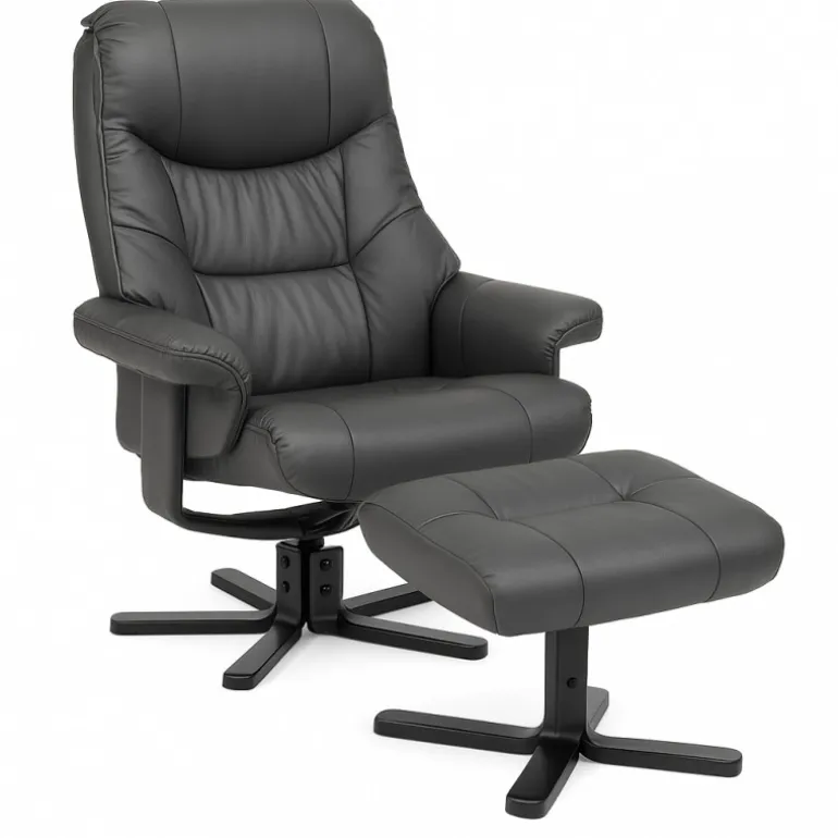 Lænestol inkl. fodskammel med justerbar ryg – designet til afslapning og velvære. Stolen er polstret med slidstærkt okselæder på alle slidflader, hvilket sikrer både komfort og lang levetid.