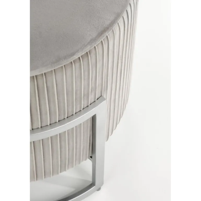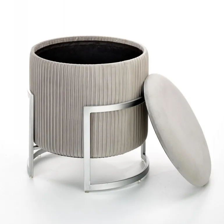 Oplev komfort og funktionalitet med vores CRICKET puf i lysegrå. Denne puf er ikke kun et stilfuldt møbel, men også en praktisk opbevaringsløsning til dit hjem. Med dimensionerne fi40/46 cm passer den perfekt ind i enhver stue, soveværelse eller kontor. Puf’en er fremstillet af blødt velourstof og robust pulverlakeret stål, hvilket sikrer både komfort og holdbarhed.