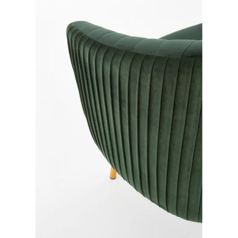 - Elegant Design: Stilfuld mørkegrøn polstring med guld ben for et luksuriøst look.