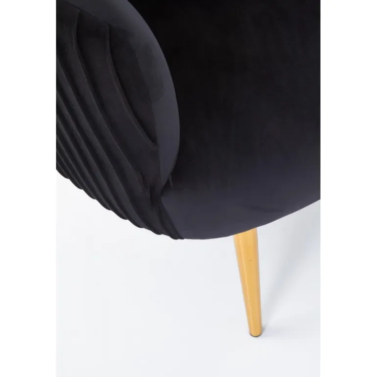 - Elegant design: Sort polstring med guldben i kromstål, der tilføjer et luksuriøst touch.