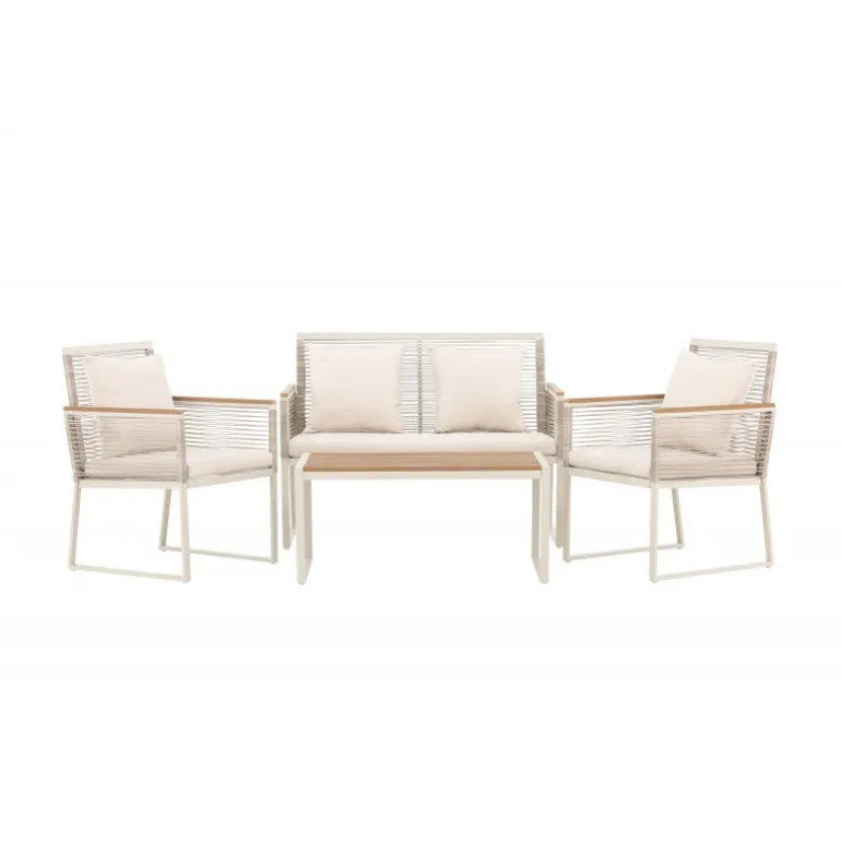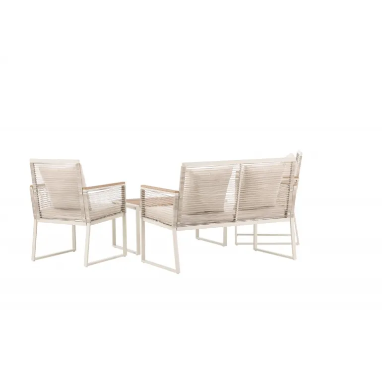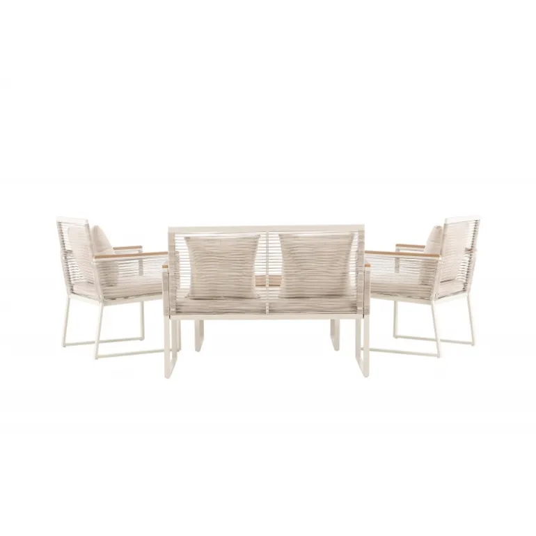 Oplev elegance og komfort med Dallas samtalesæt – den perfekte tilføjelse til din have. Dallas samtalesæt tilbyder et tidløst design med et moderne touch og er fremstillet med omhu og udvalgte materialer for at give dig en behagelig og afslappende udendørsoplevelse. Sættet inkluderer en rummelig 2 personers sofa, to komfortable stole og et praktisk bord. Du får også syv bløde puder, der tilføjer ekstra komfort og et strejf af luksus til dit siddeområde. Med Dallas samtalesæt kan du invitere dine kære til afslappende stunder og udendørs underholdning. Dallas samtalesæt har en ren hvid farve og er lavet af stål, hvilket sikrer holdbarhed og modstandsdygtighed over for vejr og vind. Bordet er udstyret med en smuk træbordplade, der giver en naturlig følelse. Skab en afslappet og indbydende atmosfære på din terrasse, altan eller i haven med Dallas samtalesæt. Uanset om du nyder din morgenkaffe ved solopgang eller er vært for aftenarrangementer, vil Dallas være din pålidelige og stilfulde følgesvend.