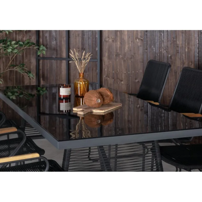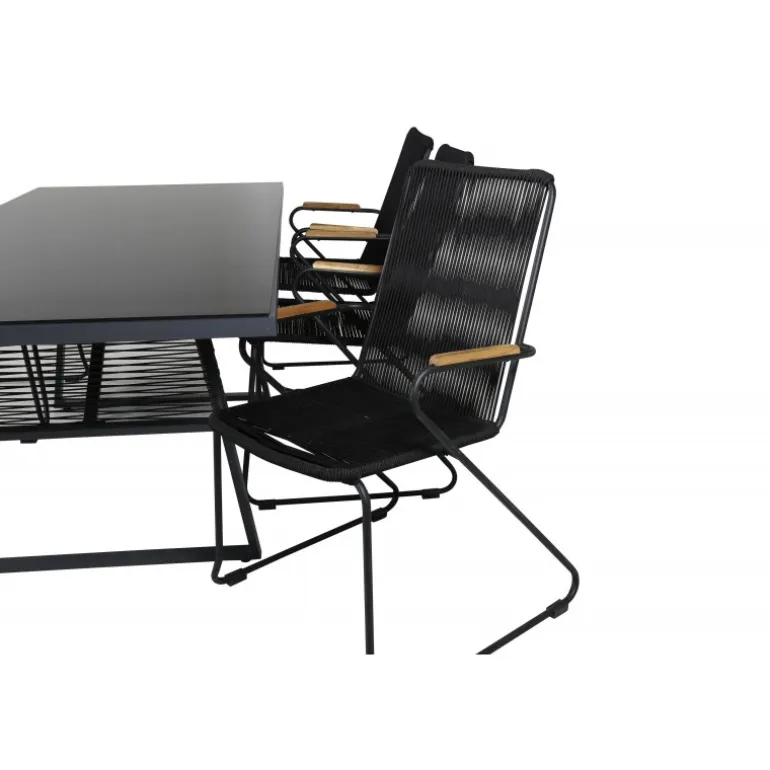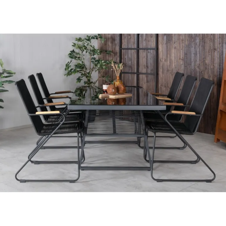Dallas spisebord i et slankt design, sammen med BoIS spisebordsstole – den perfekte kombination for dem, der ønsker et trendy Loungesæt – Havemøbelsæt, der passer lige så godt i dit udendørsrum som på din terrasse. Stolene har høj siddekomfort og inviterer til lange og vidunderlige stunder for socialt samvær!