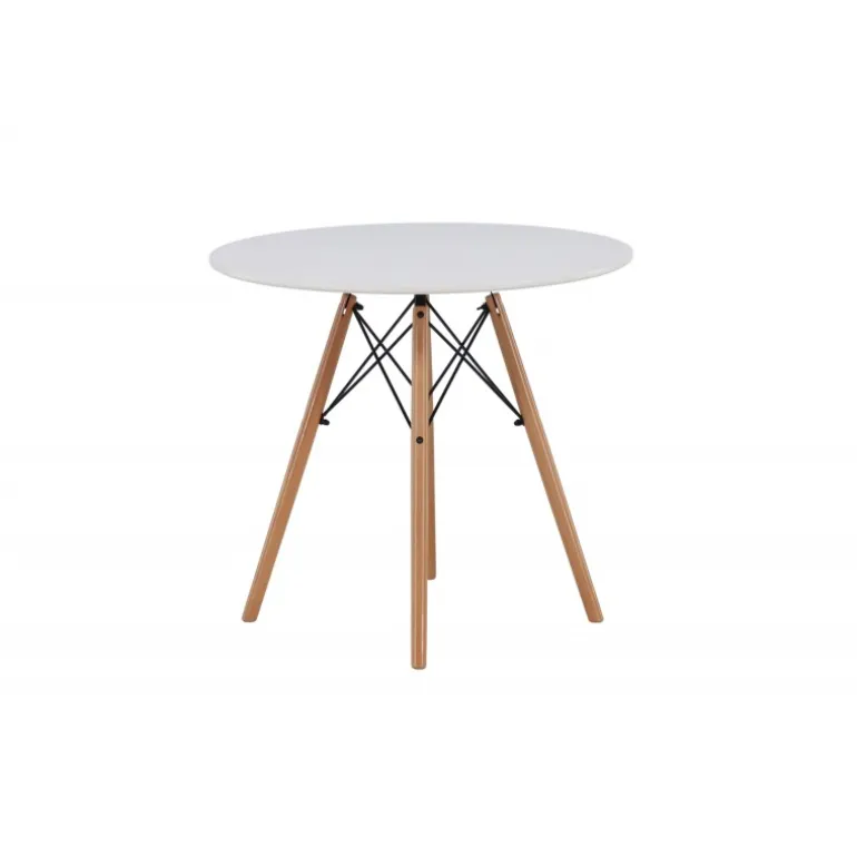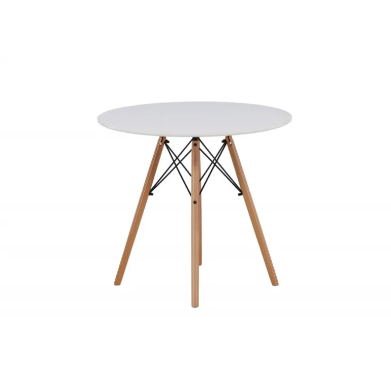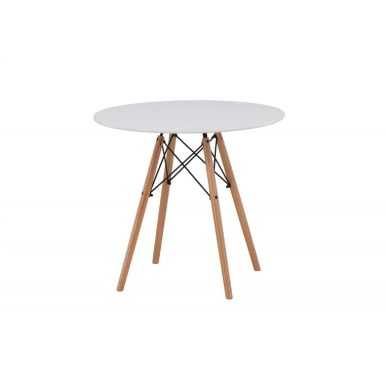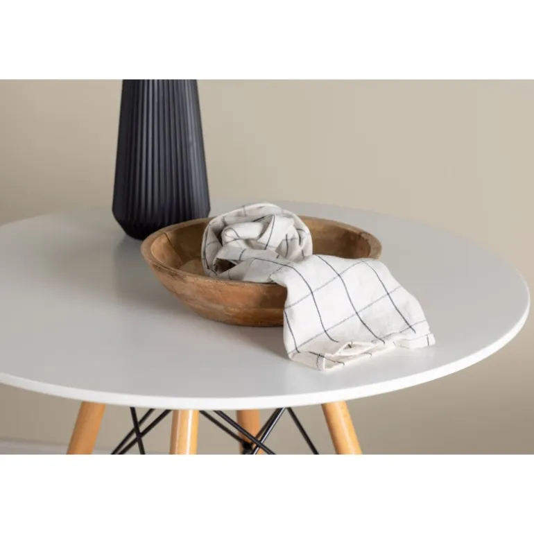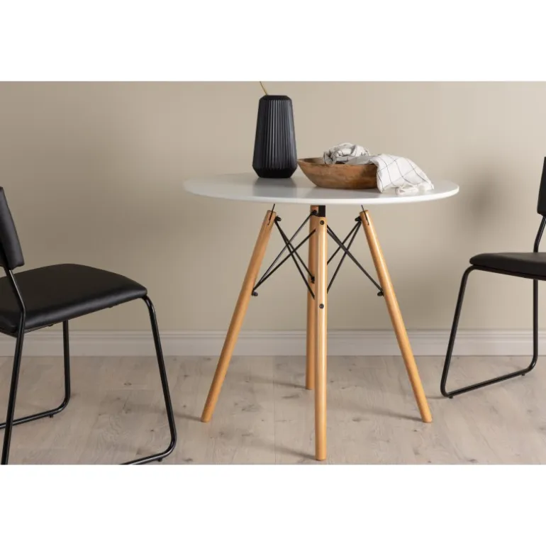 Et rundt spisebord er perfekt til at skabe sociale og indbydende øjeblikke ved alle måltider – her ender ingen på kanten! Spisebordet Danburi har et klassisk og tidløst design med en rund bordplade i hvid MDF og let udstillede ben i bøgetræ med dekorative detaljer i sort stål. Match det med et par komfortable spisebordsstole, og du vil sidde her længe med dine kære!