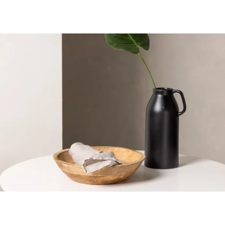 - Let udadgående ben i bøgetræ med sorte ståldetaljer.