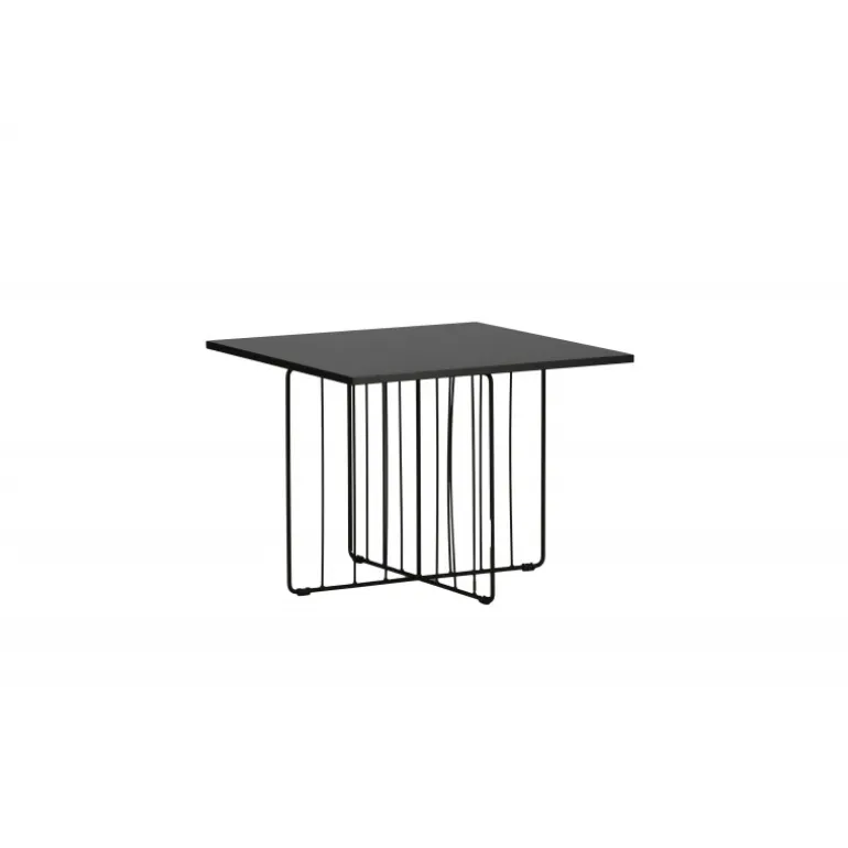 - Materiale: Firkantet bordplade i sort MDF og dekorativ gitterformation i sort stål.