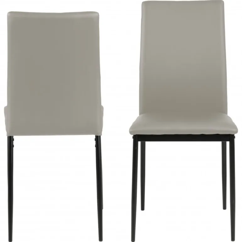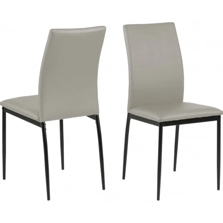 Demina spisebordsstol læderlook taupe PU, stel metal pulverlakeret, sort, pakning 4 stk