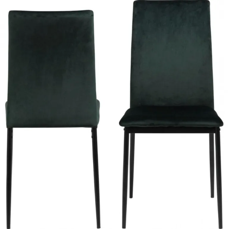 Demina spisebordsstol Dublin stof mørkegrøn 19, stel metal pulverlakeret, sort, pakning 4 stk