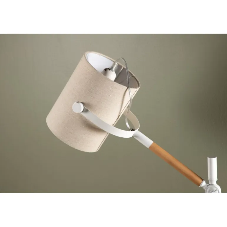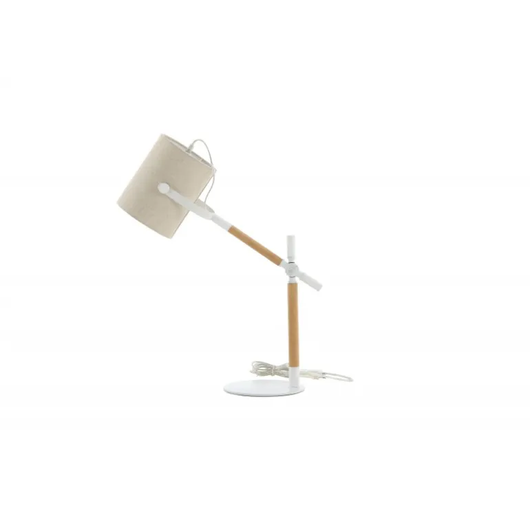 Dennis Lampe er en smuk og moderne bordlampe, der passer perfekt på sofabordet eller natbordet. Det glatte design gør det nemt at vinkle lampen og tilpasse den til dine specifikke behov! Lampeskærmen i polyesterlinned giver rummet et behageligt lys, og kombinationen af det hvide og trædetaljerne gør lampen både stilfuld og tidløs.