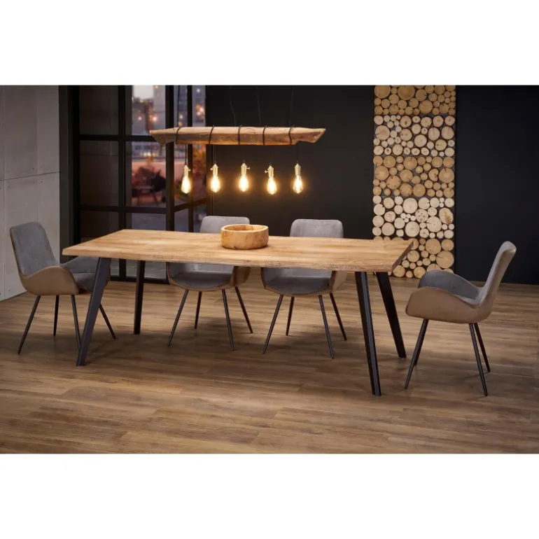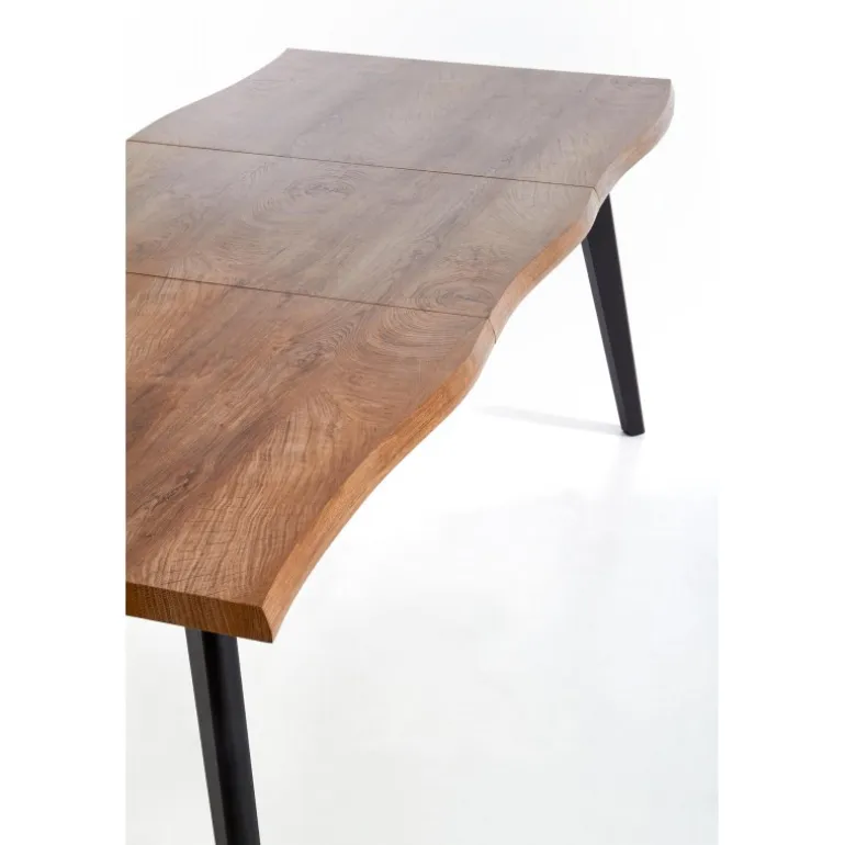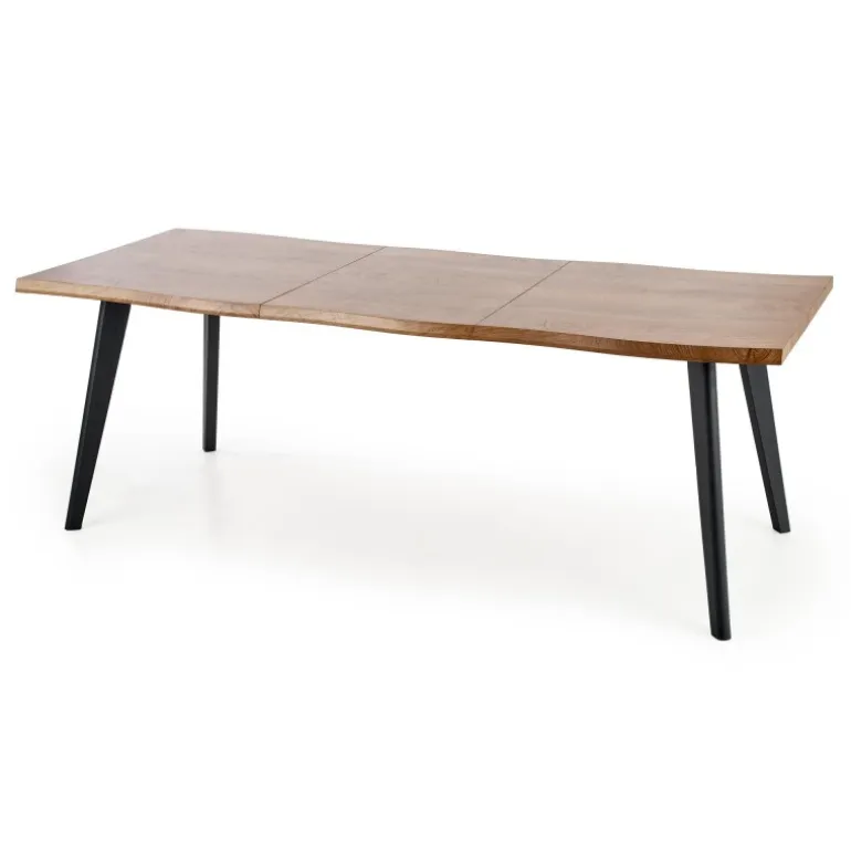 DICKSON Spisebord med udtræk er den perfekte løsning til både små og store sammenkomster. Med dimensioner på 120-180/80/75 cm giver dette Spisebord med udtræk fleksibilitet og plads til flere gæster. Bordpladen er lavet af lamineret MDF i en naturlig egetræsfinish, mens benene er pulverlakeret stål i en elegant Sort farve. For at bevare bordets kvalitet er det vigtigt at tørre spildte væsker straks for at undgå vandabsorption i materialet.
