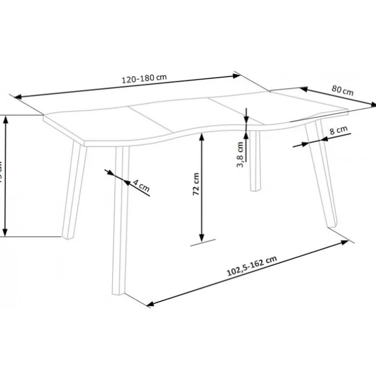 | Dimensioner | Højde: 75 cm, Bredde: 80 cm, Længde: 120-180 cm |