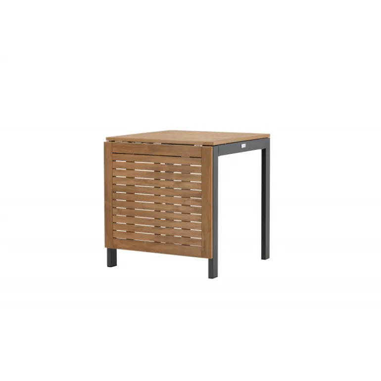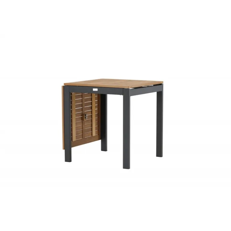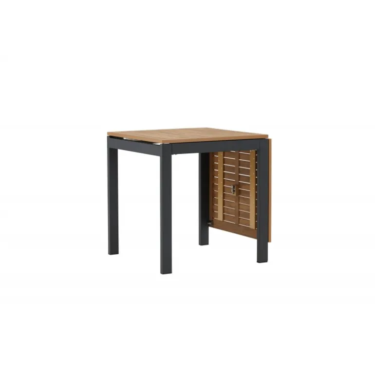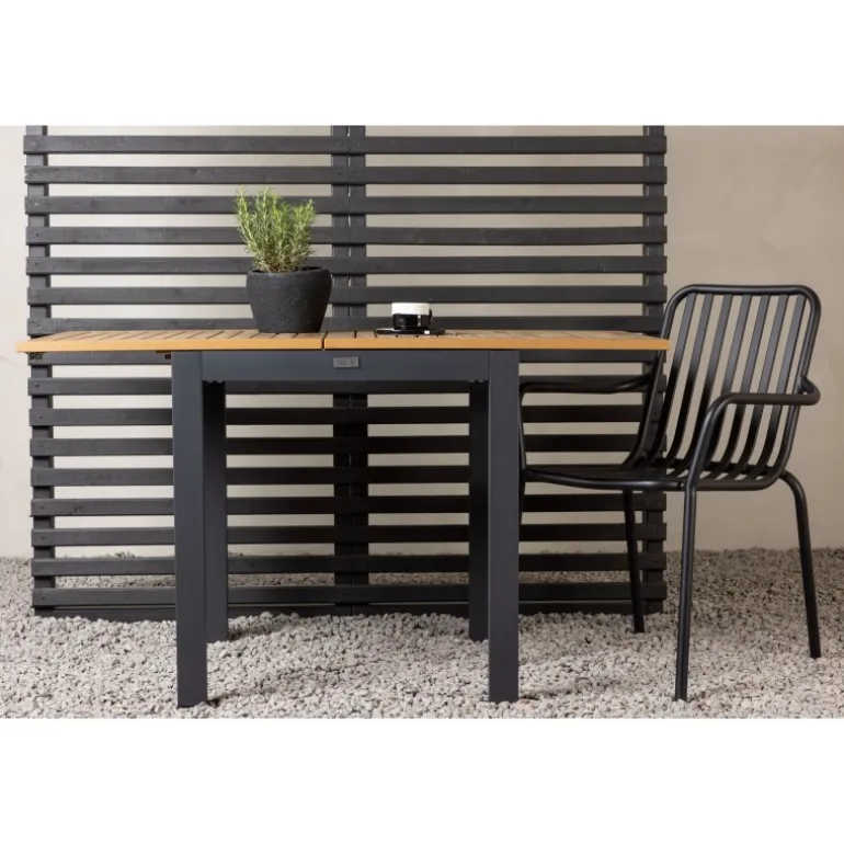 Diego cafébordet er lige så smart som det er stilfuldt med et smagfuldt skandinavisk design! Bordpladen er i brun aintwood og benene i sort aluminium. De lige nordiske former er tidløse, og med simpel konstruktion kan du nemt folde ud eller ind forlængelsespladerne langs siderne efter behov. Perfekt til morgenmad eller kaffe udenfor på en solrig sommerdag!