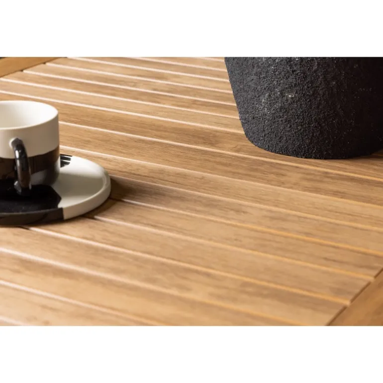 - Materialer af høj kvalitet: Bordplade i brun aintwood og ben i sort aluminium.