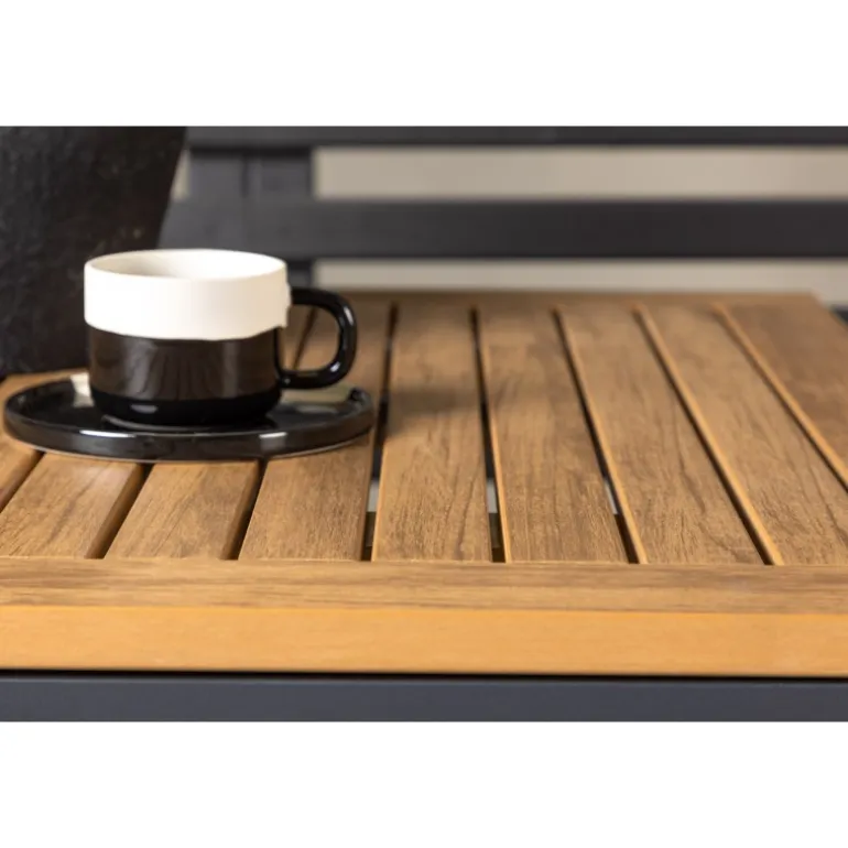- Charmerende design: Smukt bord i brun aintwood og sorte aluminiumben.
