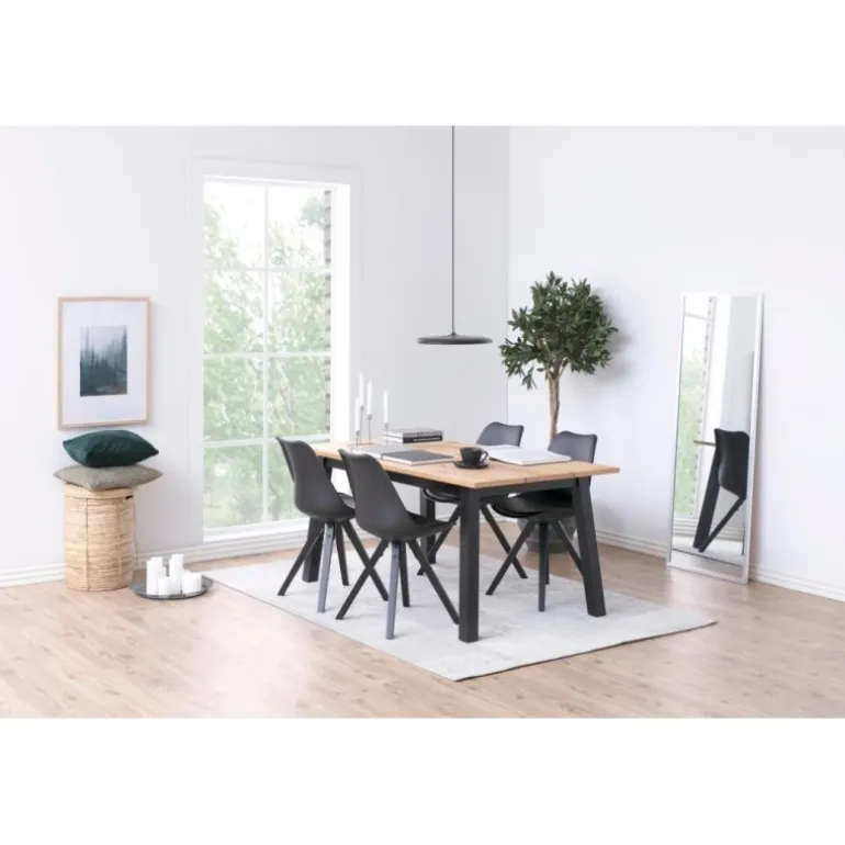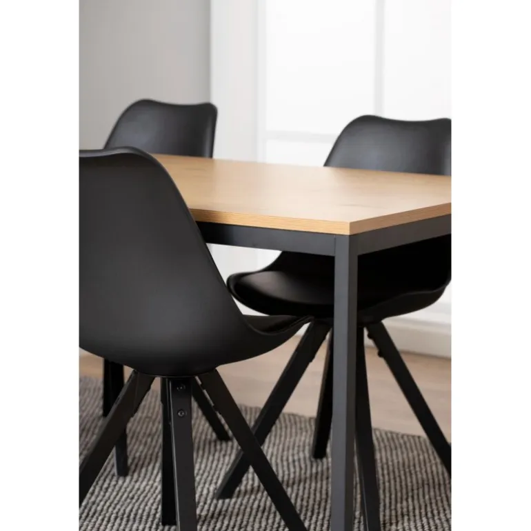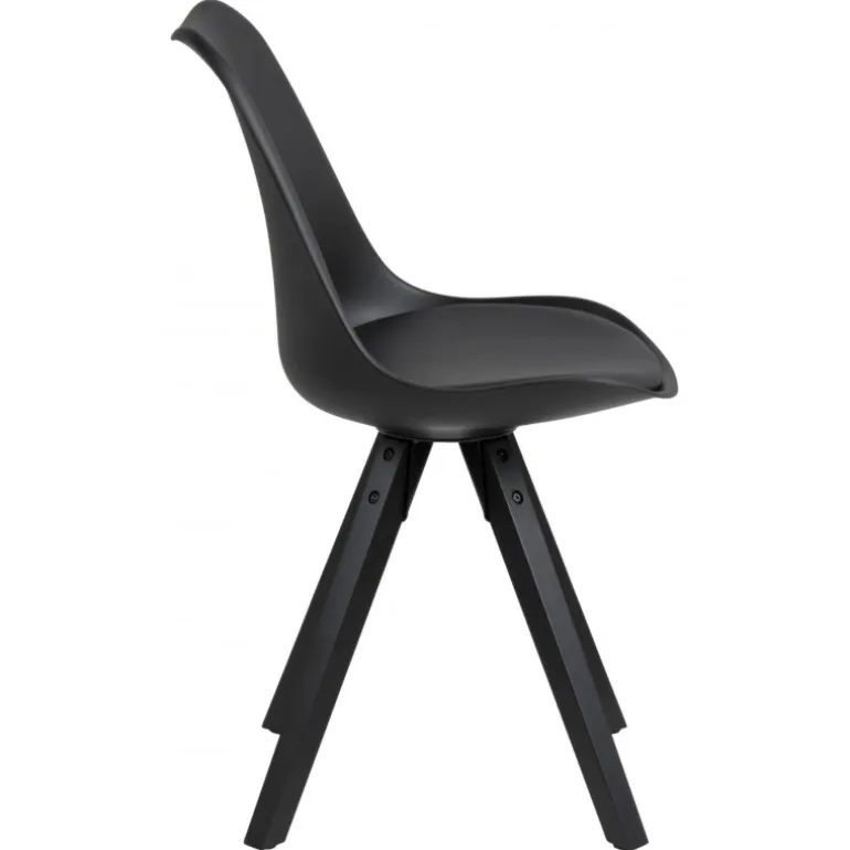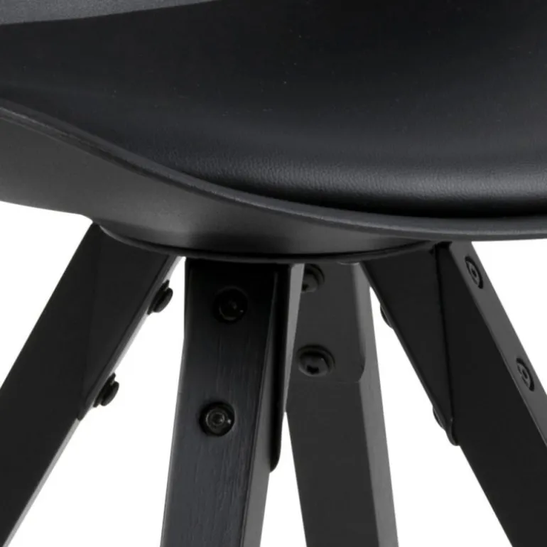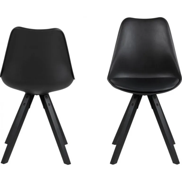 Dima spisebordsstol plastik sort, hynde sort PU, centerben gummitræ, sortmalet, pakning 2 stk