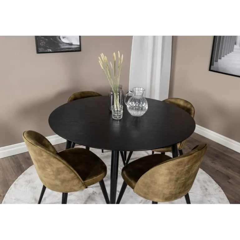- Elegant design: Kombination af Dipp spisebord og Velvet stole.
