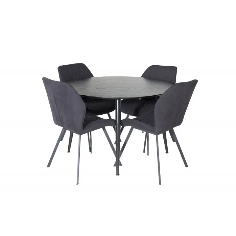 Dip, moderne og elegant rundt spisebord – her sammen med sorte spisebordsstole i fløjl fra Gemme-serien. Skab noget smukt og socialt til god mad og hyggelige stunder! Dette sæt kombinerer stilfuldt design med funktionalitet, hvilket gør det ideelt til både hverdagsbrug og særlige lejligheder. Med sorte stole i fløjl og et sort bord, er dette sæt perfekt til at skabe en sofistikeret atmosfære i dit hjem.