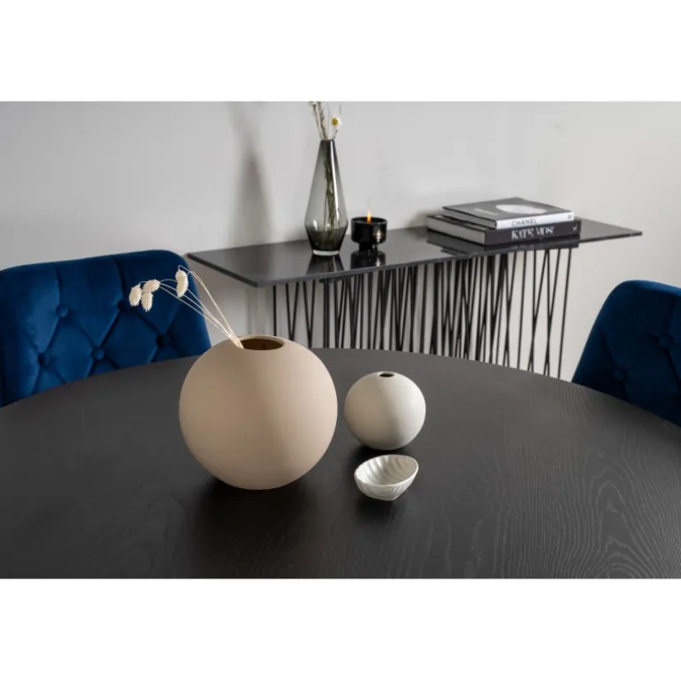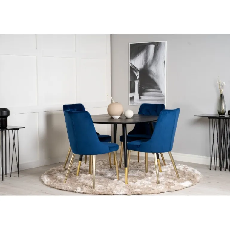 Pynt din stue med et smukt farveklik! Vores elegante spisebord kombineres her med smukke spisebordsstole i Velvet fra Smastering Design! Et madgruppe med trendy detaljer, der passer lige så godt til hverdag som til fest!