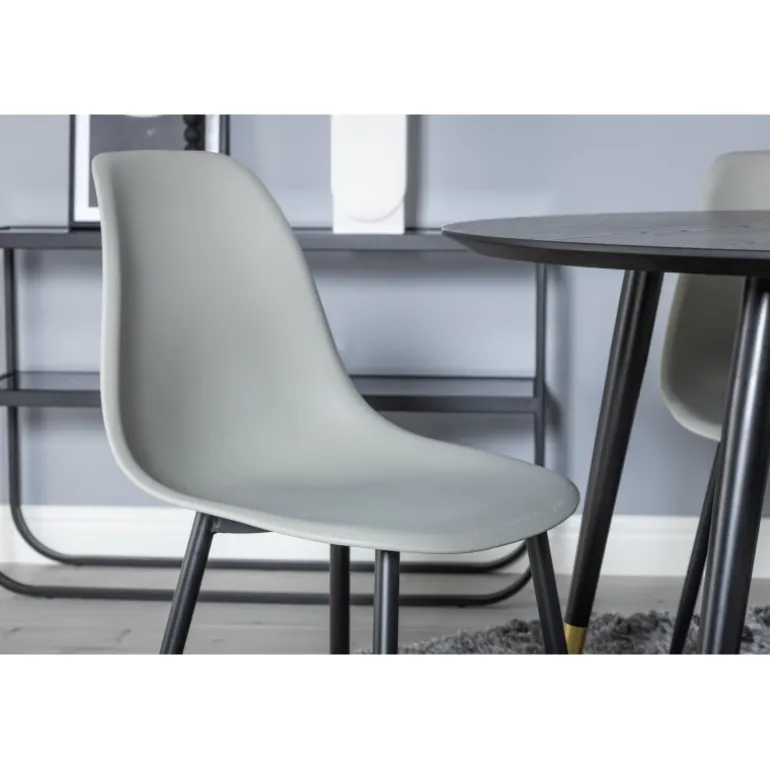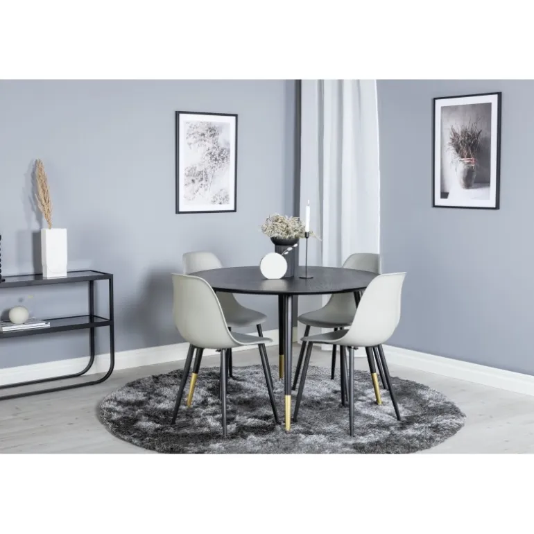 Dipp Rundt Spisebordssæt er en klassisk Spisebordssæt, der passer perfekt ind i de fleste hjem! Spisebordet kombineres med stole fra Polar-serien, hvilket skaber en hyggelig og moderne atmosfære i dit hjem. Med materialer i MDF, plastik og stål sikrer dette Spisebordssæt både holdbarhed og stil. Fås i elegante farver som sort, guld og grå. Nem at samle – alt hvad du behøver for at skabe det perfekte spiseområde.