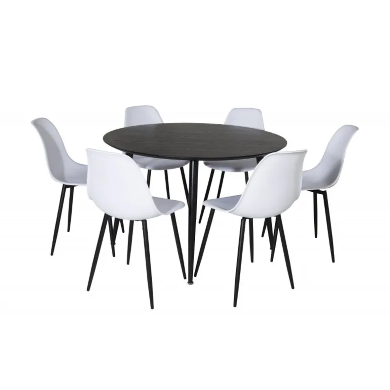 Oplev den perfekte kombination af stil og funktionalitet med vores Dipp Rundt Spisebordssæt. Dette klassiske Spisebordssæt passer ind i de fleste husholdninger og skaber en hyggelig og moderne atmosfære. Spisebordet og stolene fra Polar-serien er ideelle til dem, der ønsker et elegant og moderne hjem. Samling kræves.