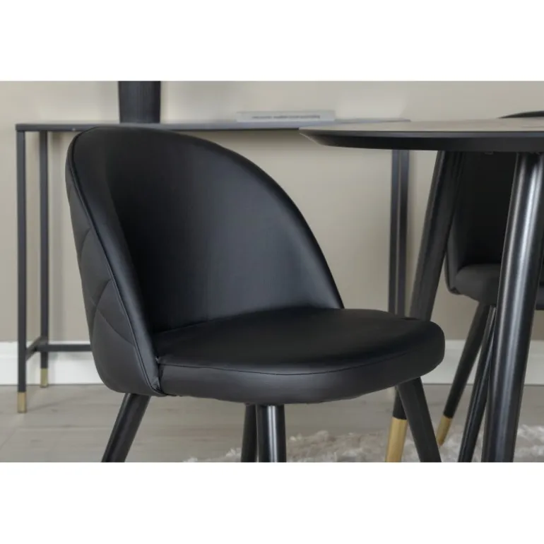Vores moderne Dipp Rundt Spisebordssæt kombinerer en elegant spisebord med komfortable stole fra Velvet-serien. Dette Spisebordssæt udstråler luksus og elegance, perfekt til både hverdag og fest. Tilføj andre dekorative elementer omkring for at “klæde dit Spisebordssæt op eller ned”. Sættet fås i sort og guld farver, hvilket gør det alsidigt og stilfuldt.