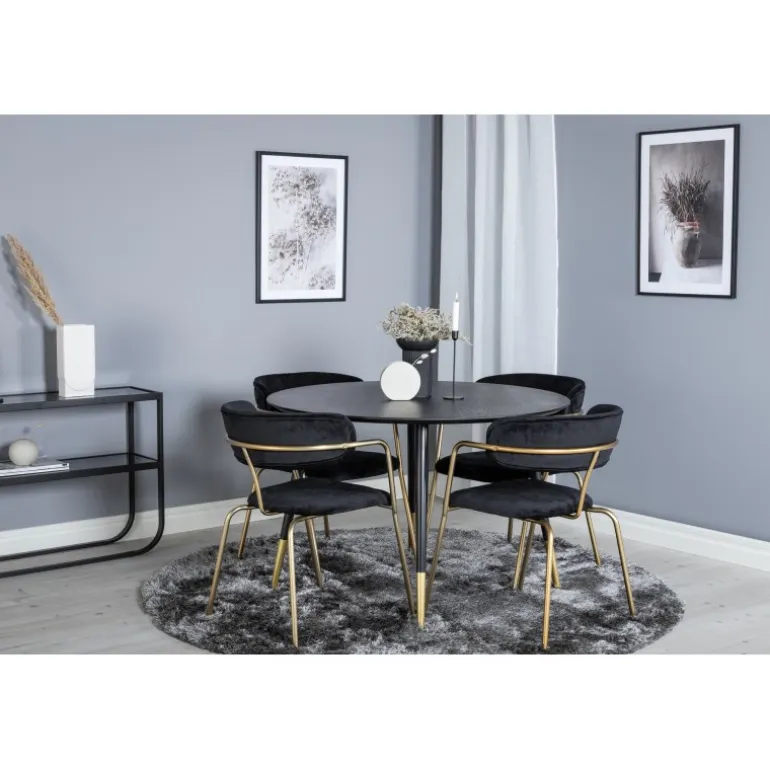 Vores stilfulde og siddevenlige spisestole Arrow kombineret med spisebordet Dipp passer perfekt ind i de fleste husholdninger. Et bord med masser af plads til middage og socialt samvær. Indret med guldkanter i hverdagen – det skal føles rart at komme hjem!