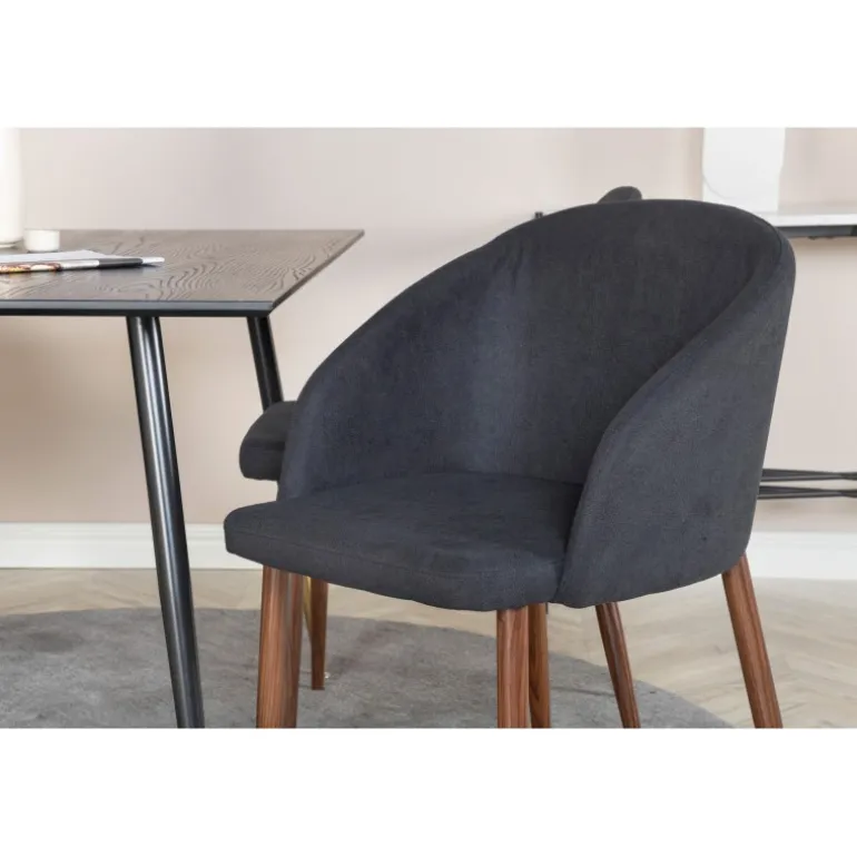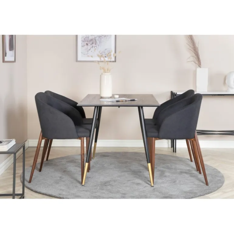 Dipp Rundt Spisebordssæt er et klassisk Spisebordssæt, der passer perfekt til de fleste husholdninger! Spisebordet fra Dipp-serien kombineret med stole fra Arch-serien er skabt til dem, der ønsker at skabe en hyggelig og moderne atmosfære i hjemmet. Dette sæt er fremstillet af kvalitetsmaterialer som bøjet træ, MDF, og stål, hvilket sikrer både holdbarhed og stil. Med en sort bordplade og stolene i naturlige farver, tilføjer dette sæt elegance til enhver spisestue.