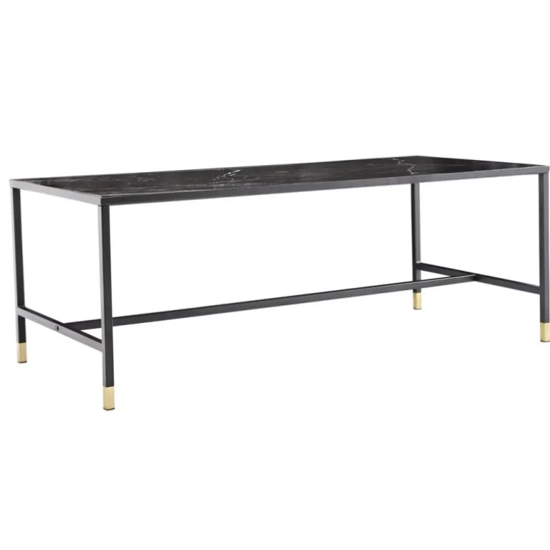 - Sort metalramme med messingbenafslutning: Kombinationen af materialer giver et moderne look.