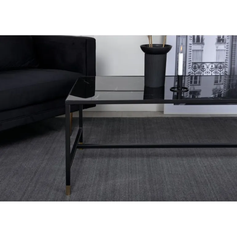 Dipp Bordet har en let mønstret glastop og en sort metalramme med messingbenafslutning. De lige nordiske former og det luftige design skaber et stilfuldt indtryk i stuen, mens de velovervejede detaljer gør bordet unikt. Placer det på et hyggeligt tæppe foran sofaen for et varmere indtryk og pynt med smukke dekorationer for at skabe en hjemlig stue. Bordet fås også i en mindre størrelse.