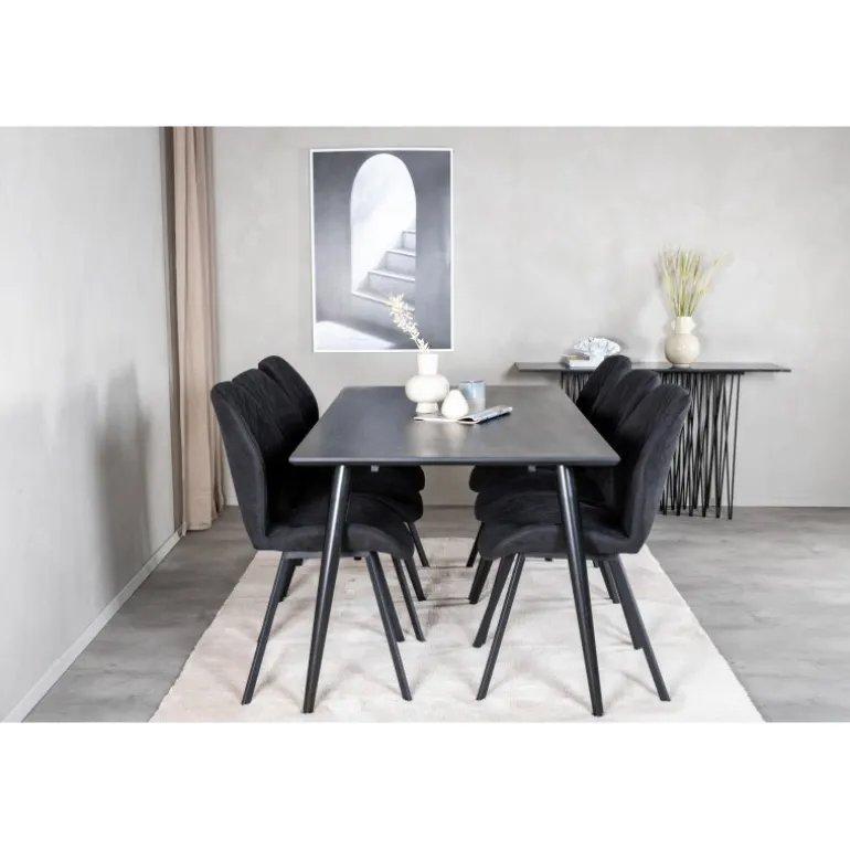 Vores moderne Dipp spisebord sammen med komfortable spisebordsstole i Gemma-serien. Her får du et Spisebordssæt, der udstråler luksus og elegance. “Dress up or down” dit Spisebordssæt med anden indretning rundt om, lige så velegnet til hverdagen som til fest!