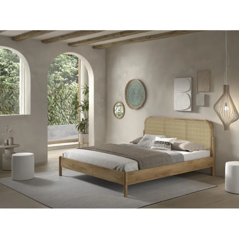 Dobbeltseng 180 x 200 cm – Olive i eg med rattan gavl