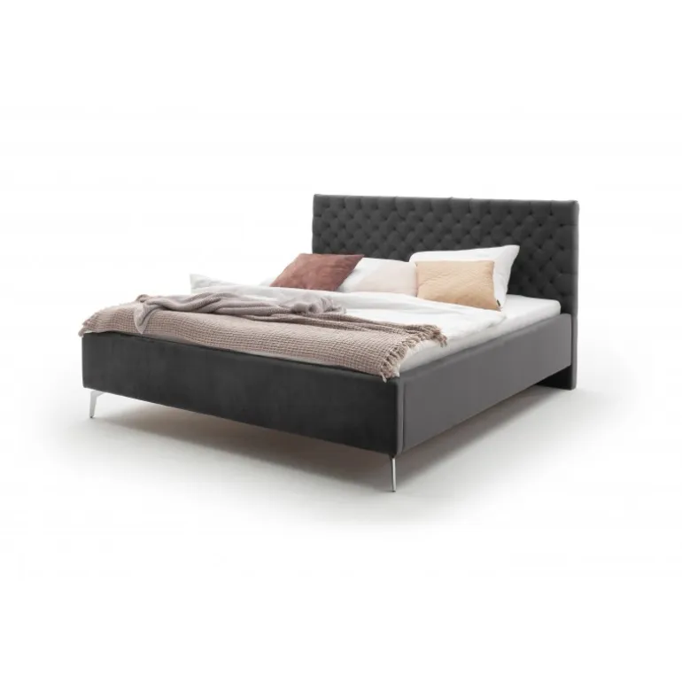 Bettkastenbett (sengeramme med opbevaring) – 160×200 cm med Chesterfield-polstring i Riviera 97 anthrazit.